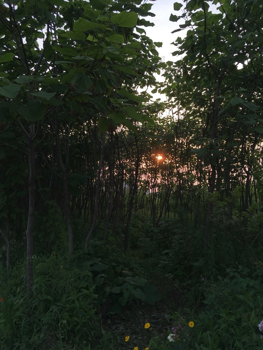 오동나무 숲 사이로 해가 지고 있다. 오동나무 길을 꾸미고 싶어서 예초작업을 하고 싶지만, 그보다 할일이 많아 뒷전이다. 그래도 여전히 숲이 우거진게 꽤나 근사하다.
