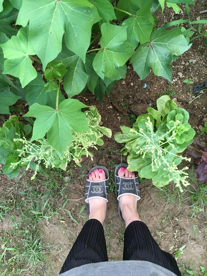내 농장용 슬리퍼. 한때 직장에서 신었던 것이다. 발에 열이 많아 회사 자리에 앉아있을 때 슬리퍼를 신고 있는데 쿠션감이 가득한 아주 고급지고 비싼 슬리퍼를 구매했다. 동네 시장 협찬이다. 한 때 회사일을 하며 신던 것을 농장에서 신으니 감회는 새롭다. 모기 물리는 거 빼고는 아주 적합하다.