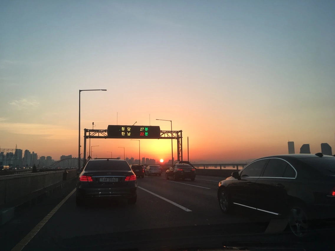아침 7시 출근을 한다. 늘 막히는 길이지만, 지하철보단 낫다고 생각한다. 가끔 이렇게 해가 뜨는 모습이 근사한날에는 '그래 너는 오늘도 열심히 살고 있구나' 싶을 때가 있다.