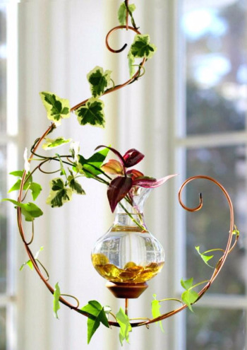 넝쿨식물이 마음에 드는 이유는 물이 아주 많아도 문제 없다. 잎 중간을 뚝 잘라 물에만 담궈두어도 스스로 뿌리를 내리고 잘 자라기 때문에 쉬우기 너무 쉬워 매력이 넘치는 것일지도 모른다. 철사를 잘 타는 넝쿨식물이라 우리집도 안 쓰는 옷걸이를 이용해 하트모양을 만들어두었다. 가장 매력적인 이유로는 자취남들에게 제격. 짝꿍에게 조금 잘라 카페에서 산 사과쥬스 병에 꼽아 놓았더니 알아서 뿌리를 잘 내리고 새끼 잎까지 아주 잘 자라고 있다.