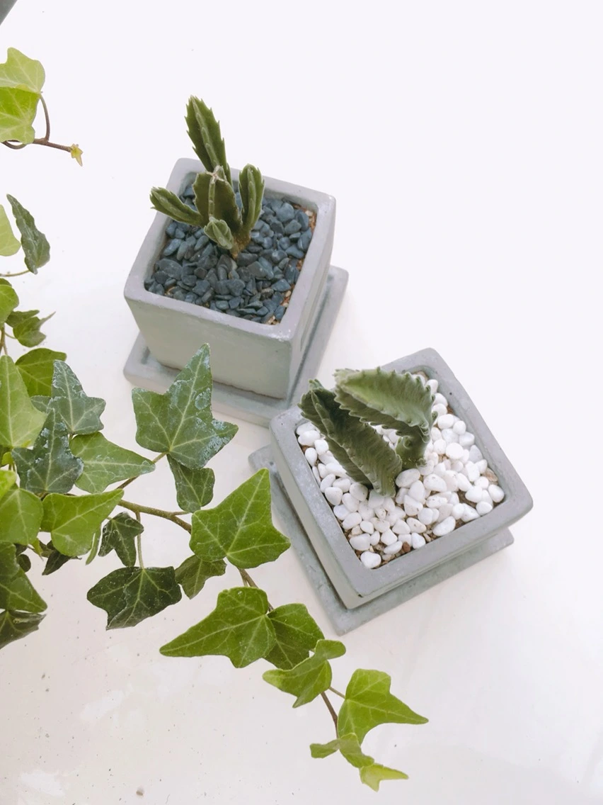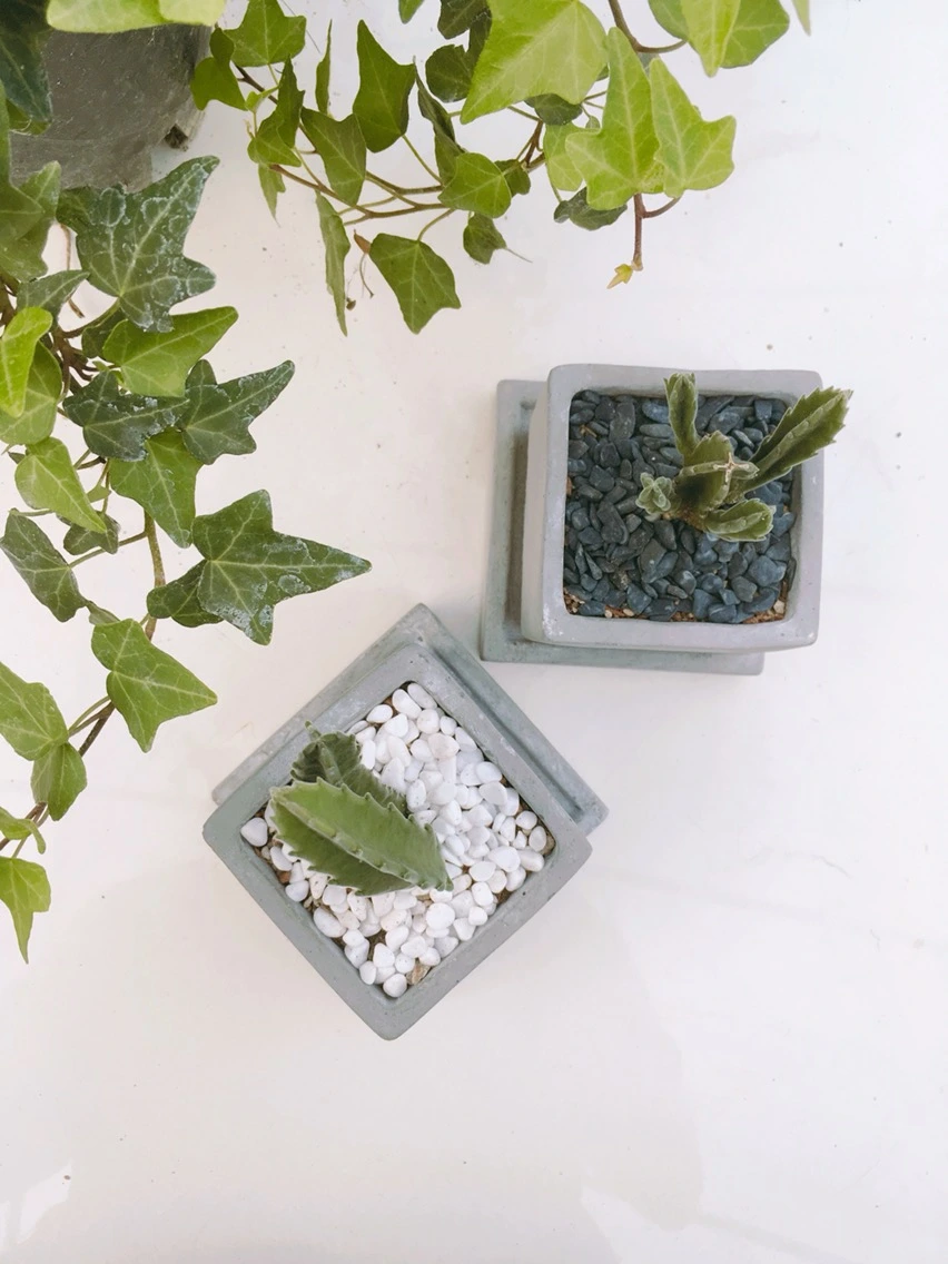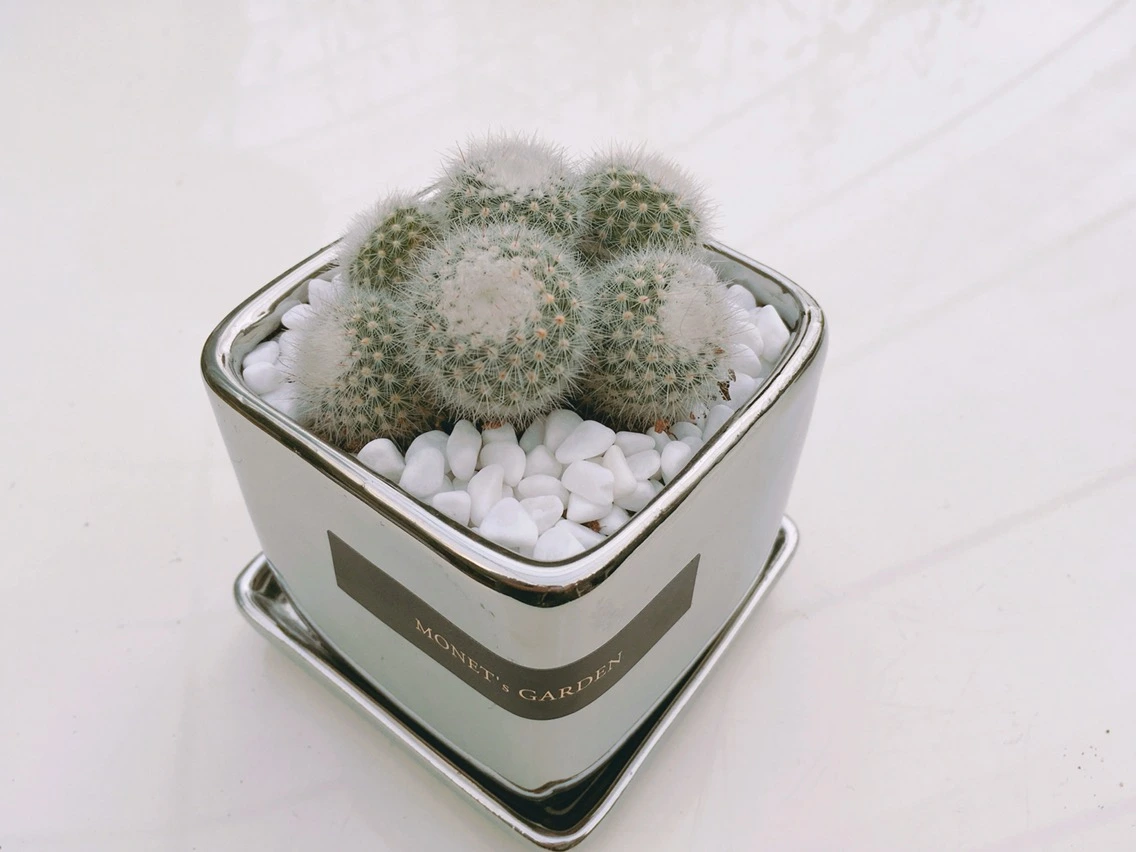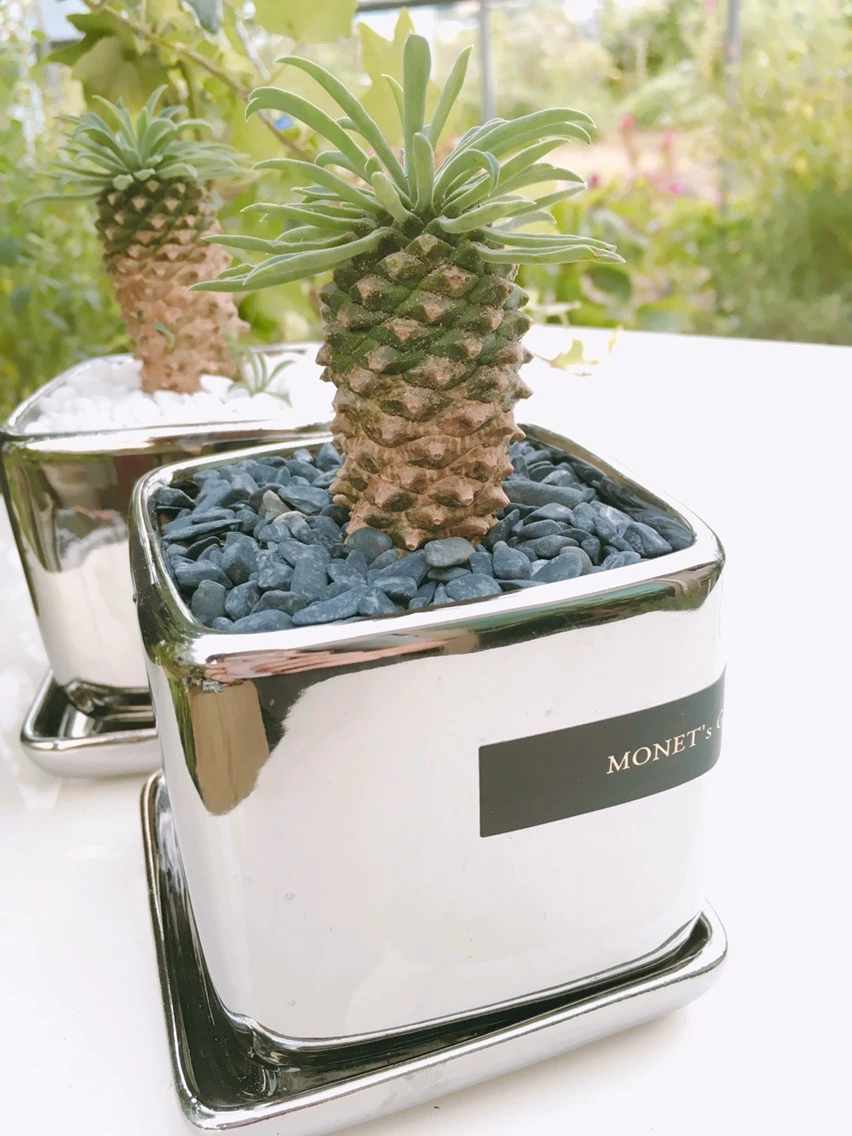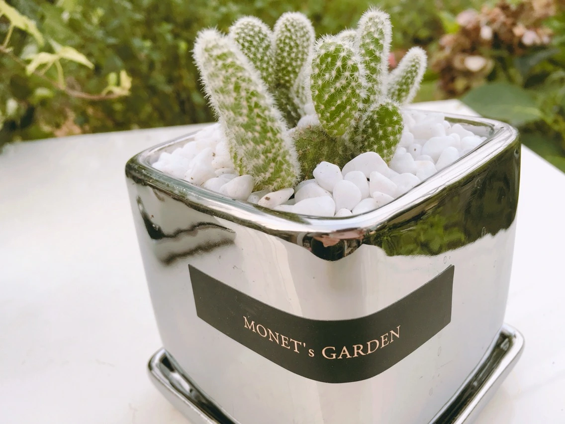주로 메탈 화분을 많이 사용하는데, 정말 색감이 메탈화분과 환상적인 조화다. 하얀 조약돌을 깔아주니 전부 다 번쩍번쩍 하얗게 빛나는 기분이다. 화사하기까지하다.