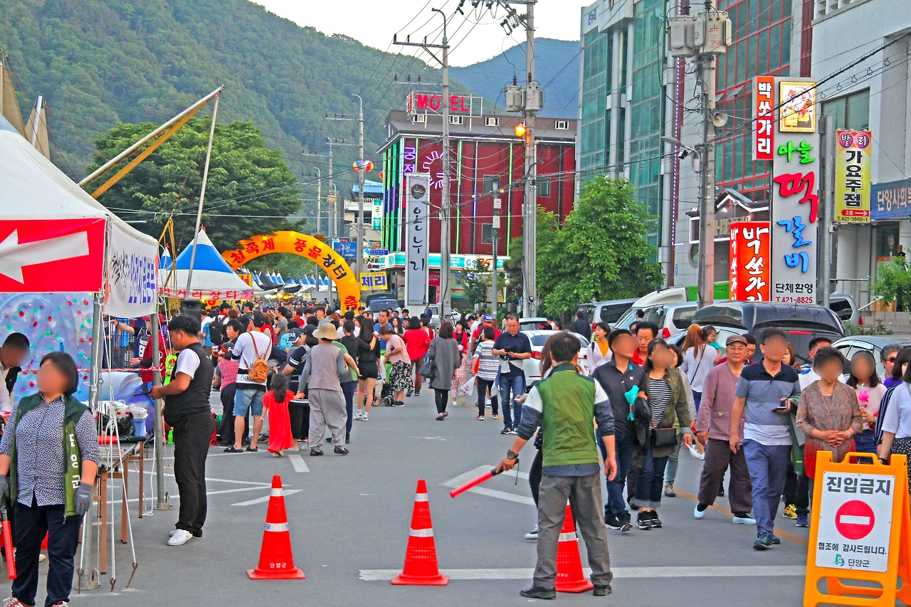 등산이 끝나고 저녁을 먹은 뒤, 강변을 따라 서 있는 축제 행사장을 둘러보았다. 꽃을 주제로 한 축제가 늘 그렇듯, 축제 행사장엔 특별히 볼거리가 없고 길거리 음식을 먹거나 초청가수의 공연을 보는 것이 주가 되는 축제였다. 왁자지껄한 분위기 속에서 초청 가수의 공연과 버스킹 공연을 보고, 사람 구경을 하며 하루를 마무리하였다.