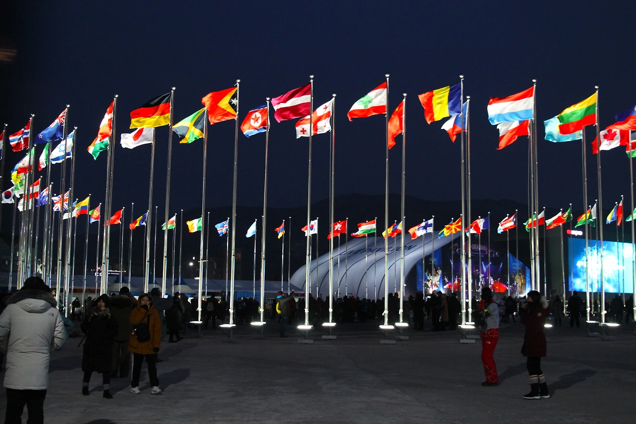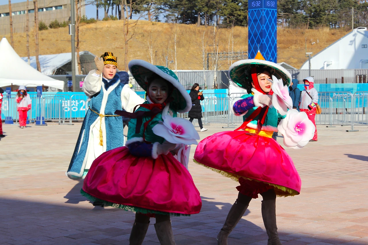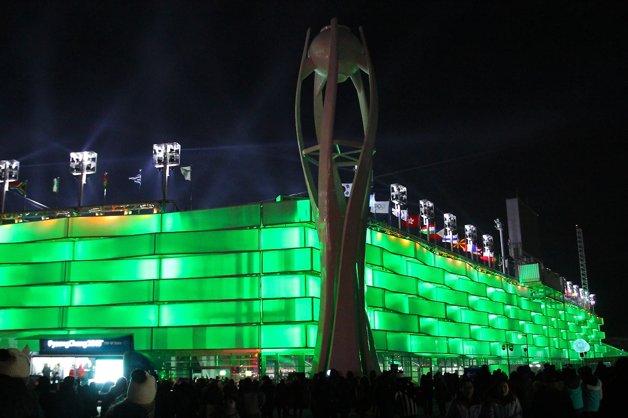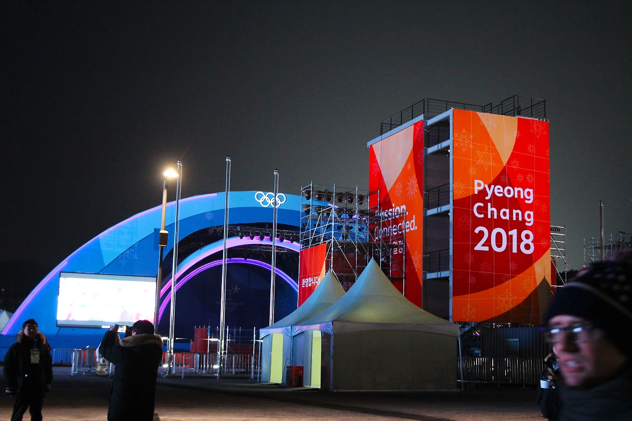 빛 터널과 검문검색대를 지나니 올림픽플라자 한가운데 있는 각양각색의 국기들이 눈앞에 펼쳐진다. 겨울이 없는 아프리카와 동남아시아의 몇몇 국기들이 보이는 것이 신기했다. 한국을 알리는 대표적 건축물인 한옥, 동계올림픽을 후원한 기업들의 부스, 동계올림픽 관련 상품을 구매할 수 있는 스토어 등 축제 분위기를 고조시키는 수많은 장소들이 관람객의 눈길을 끌고 있었다.