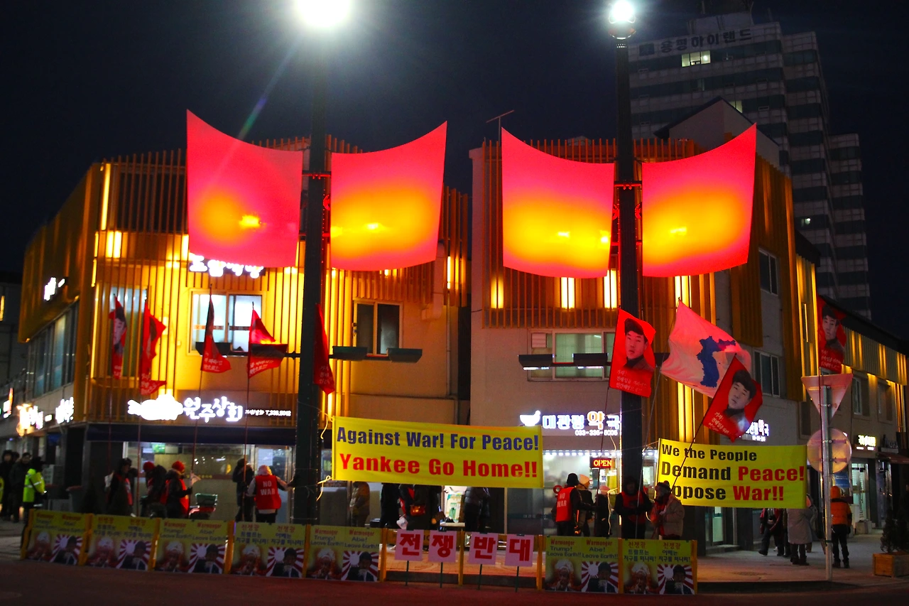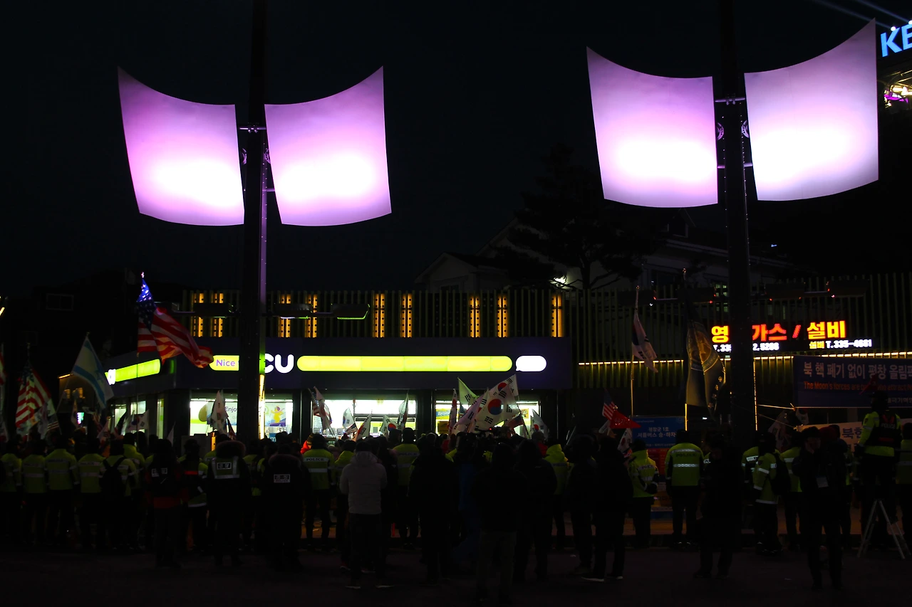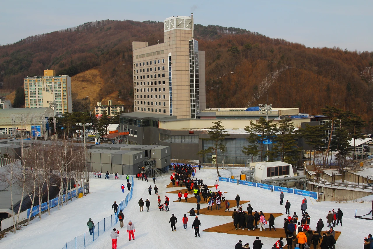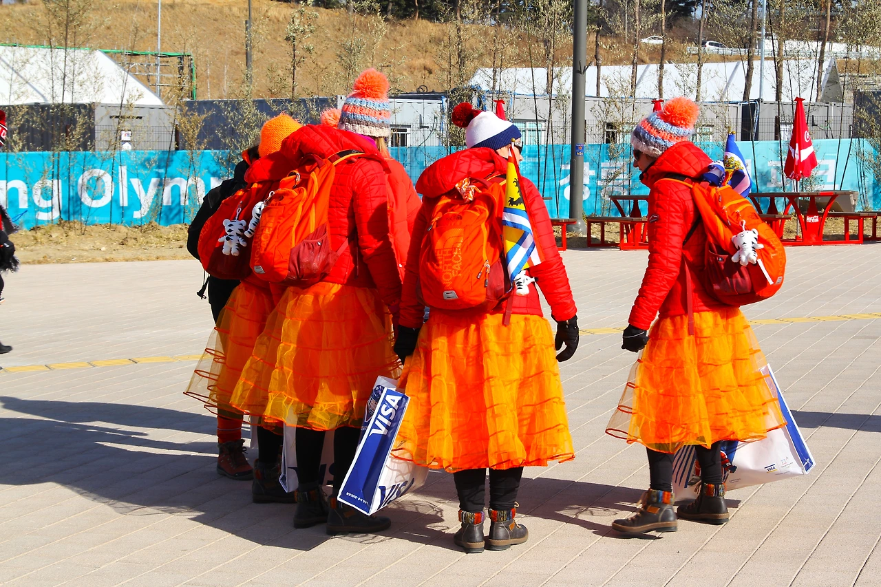 빛 터널과 검문검색대를 지나니 올림픽플라자 한가운데 있는 각양각색의 국기들이 눈앞에 펼쳐진다. 겨울이 없는 아프리카와 동남아시아의 몇몇 국기들이 보이는 것이 신기했다. 한국을 알리는 대표적 건축물인 한옥, 동계올림픽을 후원한 기업들의 부스, 동계올림픽 관련 상품을 구매할 수 있는 스토어 등 축제 분위기를 고조시키는 수많은 장소들이 관람객의 눈길을 끌고 있었다.