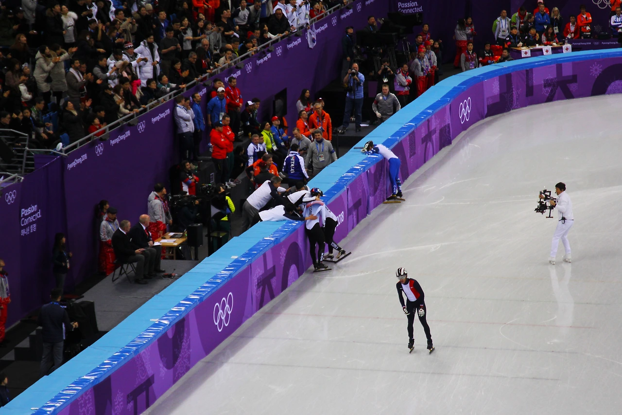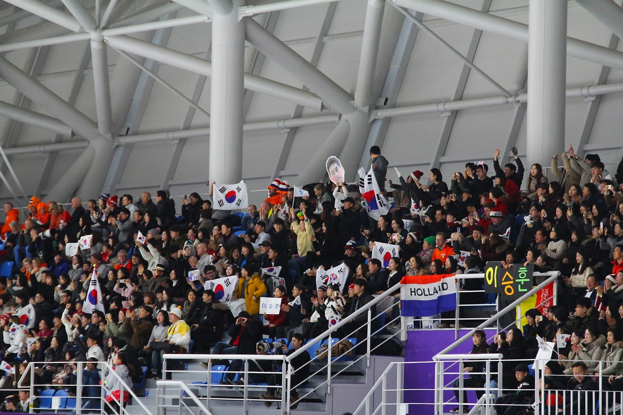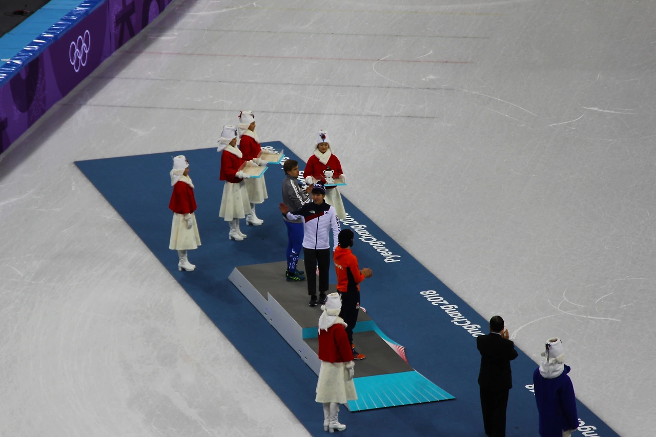 쇼트트랙 첫날엔 여자 3000m 계주 예선전, 남자 1,500m 결승전, 남자 500m 예선 등 다양한 종목이 열렸다. 금메달이 걸린 종목은 남자 1,500m 단 하나였지만, 이 날의 경기는 숱한 화제를 불러일으킬 정도로 흥미롭고 재미있었다. 우선, 남자 1,500m 종목에서는 금메달 기대주였던 세계랭킹 1위 황대헌 선수가 아쉽게 넘어졌지만, 임효준 선수가 1등으로 들어오면서 대한민국에 첫 금메달을 안겼다. TV에서만 보던 한국이 금메달 따는 모습이 실제 내 눈 앞에서 펼쳐지다니... 믿기지 않았다. 임효준 선수가 금메달리스트가 되기 전, 대한민국 국민 전체가 더욱더 흥분했던 건 여자 3,000m 계주였다. 레이스 중간에 이유빈 선수가 넘어졌지만 포기하지 않고 달리면서 1등으로, 그것도 올림픽 신기록을 세우면서 준결승을 통과한 것이다. 우리나라에서도 유명한 미국의 쇼트트랙 대표 선수였던 안톤 오노는
