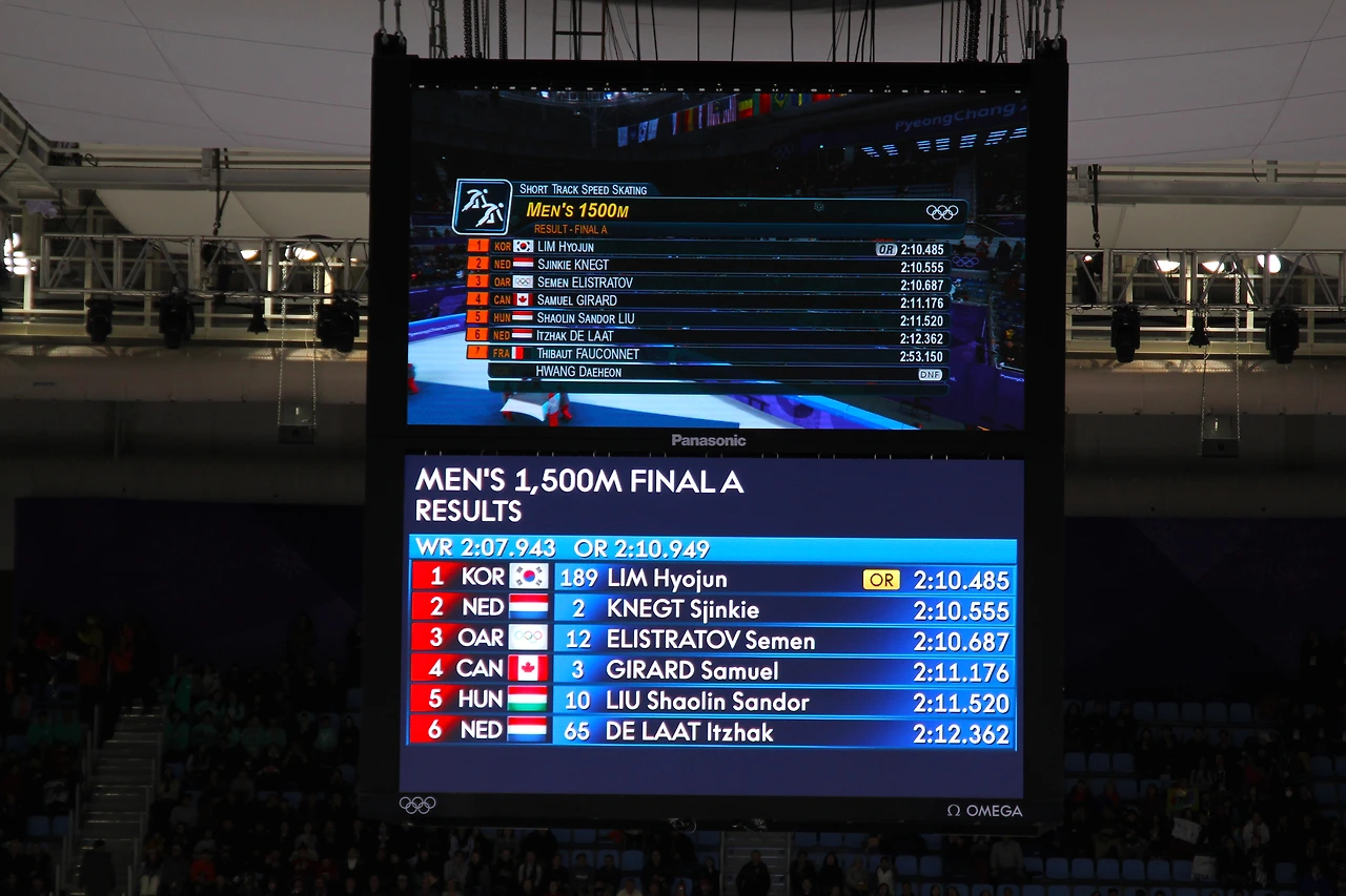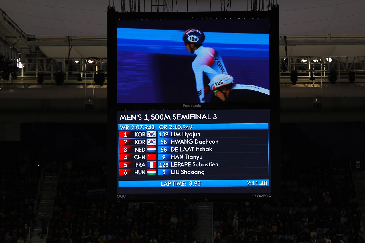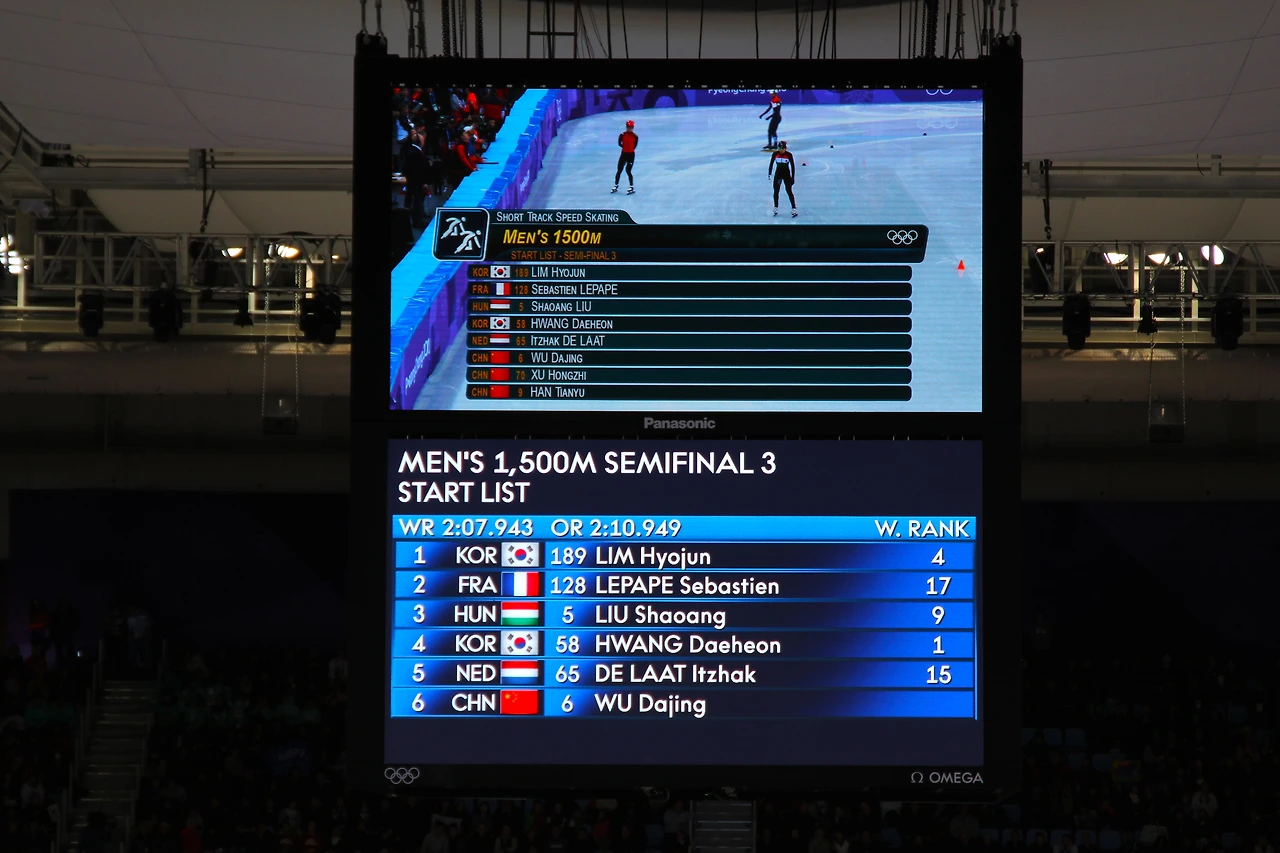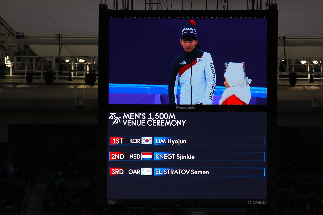 쇼트트랙 첫날엔 여자 3000m 계주 예선전, 남자 1,500m 결승전, 남자 500m 예선 등 다양한 종목이 열렸다. 금메달이 걸린 종목은 남자 1,500m 단 하나였지만, 이 날의 경기는 숱한 화제를 불러일으킬 정도로 흥미롭고 재미있었다. 우선, 남자 1,500m 종목에서는 금메달 기대주였던 세계랭킹 1위 황대헌 선수가 아쉽게 넘어졌지만, 임효준 선수가 1등으로 들어오면서 대한민국에 첫 금메달을 안겼다. TV에서만 보던 한국이 금메달 따는 모습이 실제 내 눈 앞에서 펼쳐지다니... 믿기지 않았다. 임효준 선수가 금메달리스트가 되기 전, 대한민국 국민 전체가 더욱더 흥분했던 건 여자 3,000m 계주였다. 레이스 중간에 이유빈 선수가 넘어졌지만 포기하지 않고 달리면서 1등으로, 그것도 올림픽 신기록을 세우면서 준결승을 통과한 것이다. 우리나라에서도 유명한 미국의 쇼트트랙 대표 선수였던 안톤 오노는