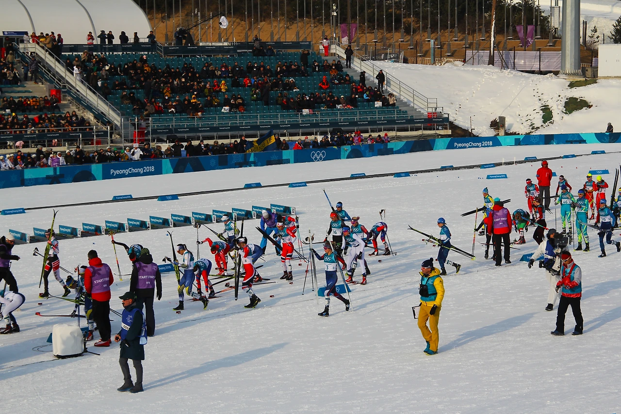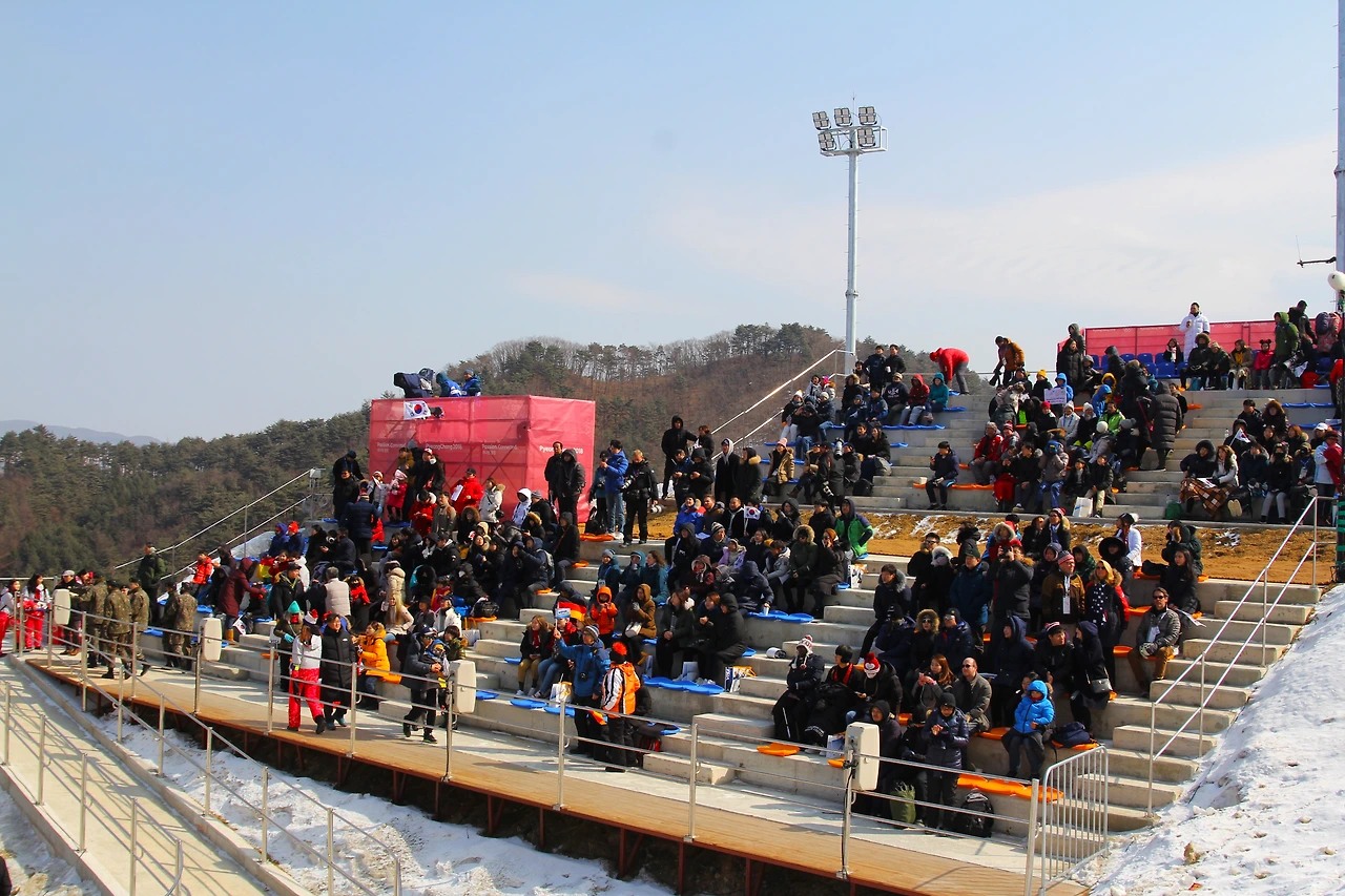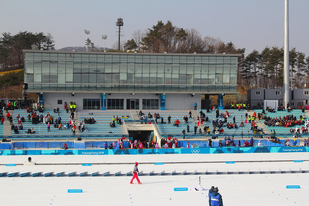 한참을 걸어 크로스컨트리센터에 도착하니 생각보다 많은 관람객들이 벌써부터 모여 선수들을 지켜보고 있다. 크로스컨트리 종목 중 내가 본 것은 크로스컨트리 스키 여자 7.5km + 7.5km 스키애슬론으로, 처음 7.5km는 클래식으로 마지막 7.5km는 프리 주법으로 주행해야 하는 종목이다. 마리트 비에르겐 (37)은 2010 벤쿠버 동계올림픽에서 금메달 3개, 2014 소치 동계올림픽에서 금메달 3개를 딴 크로스컨트리의 살아있는 전설로, 평창에서도 금메달을 딸 유력 후보 중 하나였다. 마리트 비에르겐이 선두그룹에서 치고 나가자, 옆에 있던 미국인들도 환호를 지르며 그녀가 금메달을 딸 것으로 예상했지만... 샬로테 칼라 (스웨덴, 30)가 1km를 남기고 선두그룹과 격차를 벌려나갔고, 압도적인 차이로 우승을 차지했다. 샬로테 칼라가 우승한 건 의외였지만 결국 모두의 예상대로 크로스컨트리 강국인 북유럽 국가들 (스웨덴, 노르웨이, 핀란드)이 금, 은, 동 모든 메달을 싹쓸이했다.