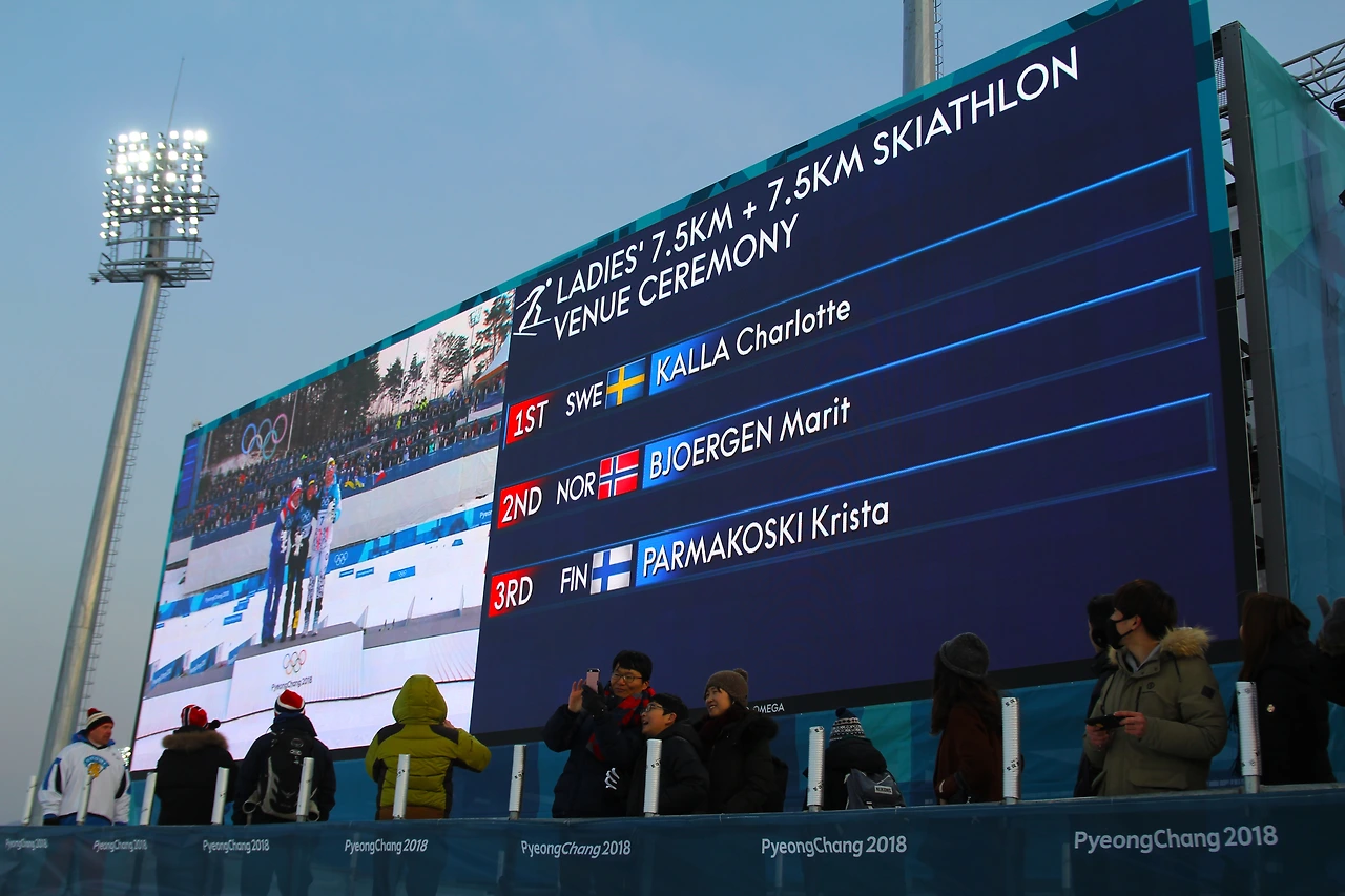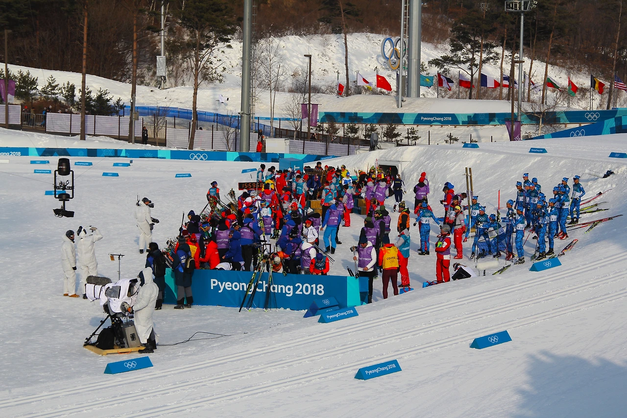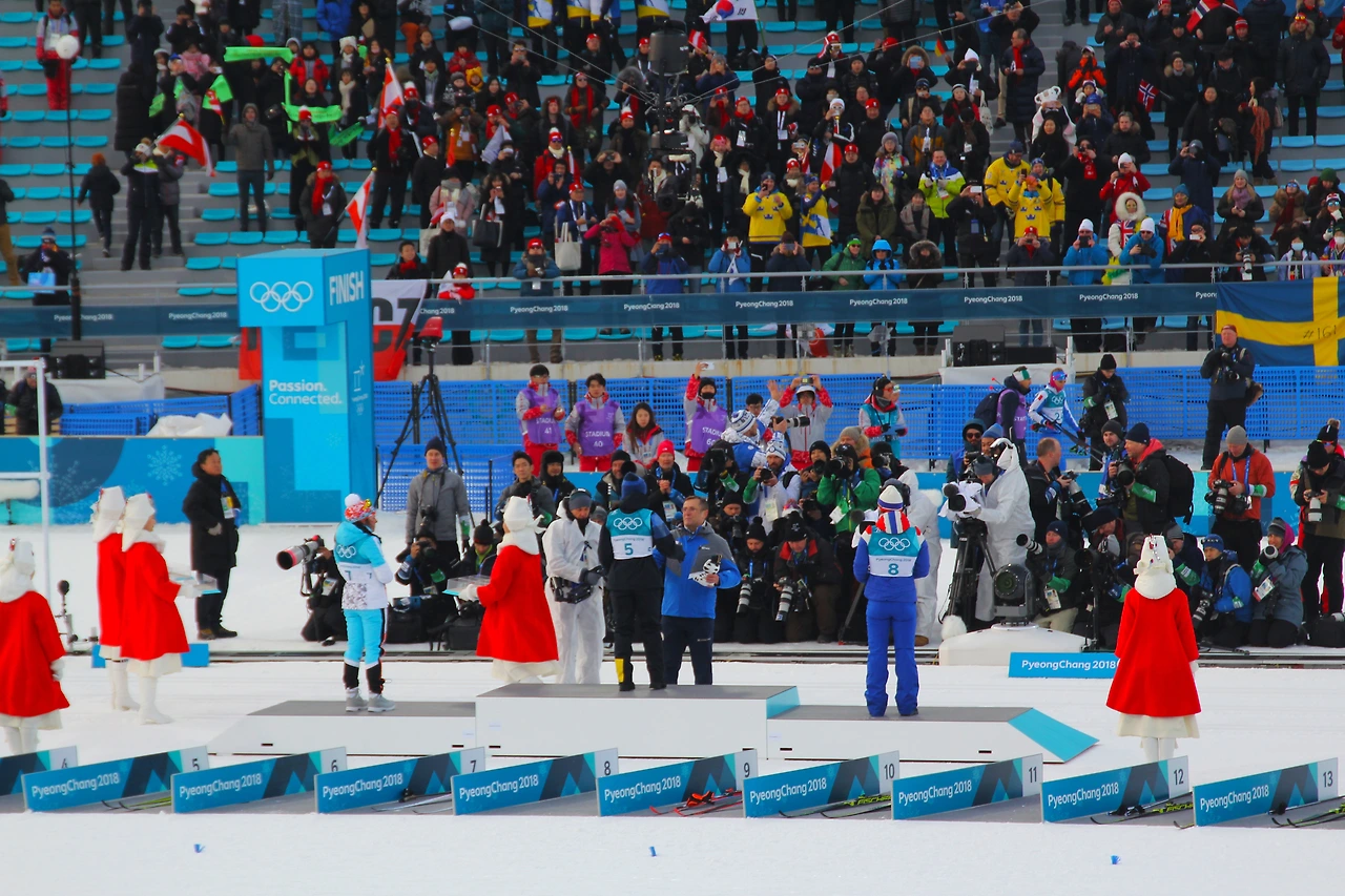 한참을 걸어 크로스컨트리센터에 도착하니 생각보다 많은 관람객들이 벌써부터 모여 선수들을 지켜보고 있다. 크로스컨트리 종목 중 내가 본 것은 크로스컨트리 스키 여자 7.5km + 7.5km 스키애슬론으로, 처음 7.5km는 클래식으로 마지막 7.5km는 프리 주법으로 주행해야 하는 종목이다. 마리트 비에르겐 (37)은 2010 벤쿠버 동계올림픽에서 금메달 3개, 2014 소치 동계올림픽에서 금메달 3개를 딴 크로스컨트리의 살아있는 전설로, 평창에서도 금메달을 딸 유력 후보 중 하나였다. 마리트 비에르겐이 선두그룹에서 치고 나가자, 옆에 있던 미국인들도 환호를 지르며 그녀가 금메달을 딸 것으로 예상했지만... 샬로테 칼라 (스웨덴, 30)가 1km를 남기고 선두그룹과 격차를 벌려나갔고, 압도적인 차이로 우승을 차지했다. 샬로테 칼라가 우승한 건 의외였지만 결국 모두의 예상대로 크로스컨트리 강국인 북유럽 국가들 (스웨덴, 노르웨이, 핀란드)이 금, 은, 동 모든 메달을 싹쓸이했다.
