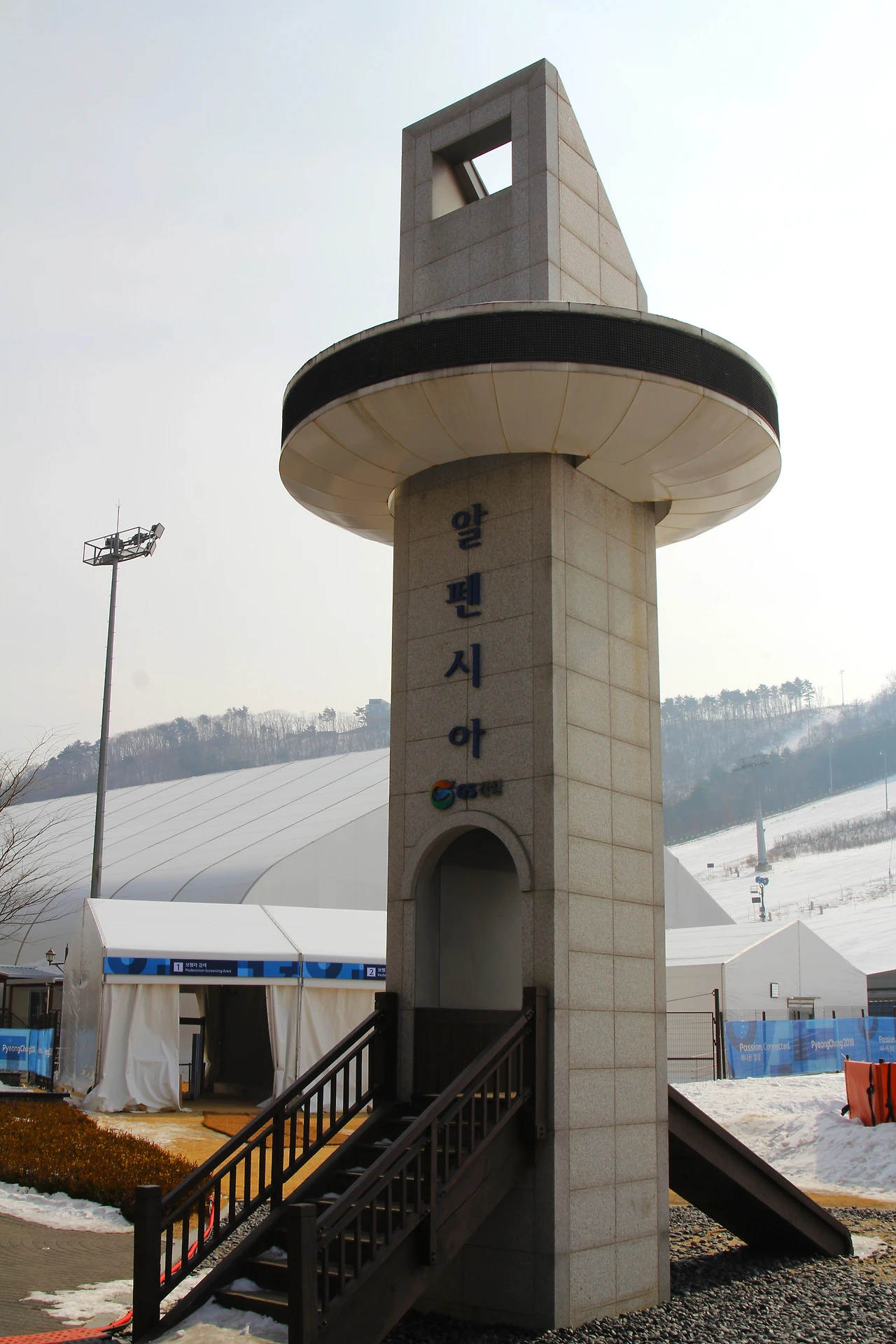 알펜시아에서 내리면 알펜시아 크로스컨트리센터, 알펜시아 스키점프센터, 알펜시아 바이애슬론센터가 모여있는 알펜시아 올림픽파크로 향해야 한다. 선수들이 타는 버스 정류소와 관람객이 타는 버스 정류소가 잘 구분되어 있지 않아 자원봉사자들에게 물어보는 것이 편했다. 올림픽파크 북쪽 입구 또는 동쪽 입구에서 접근할 수 있는데, 크로스컨트리센터는 동쪽에서 조금 더 가까웠다.