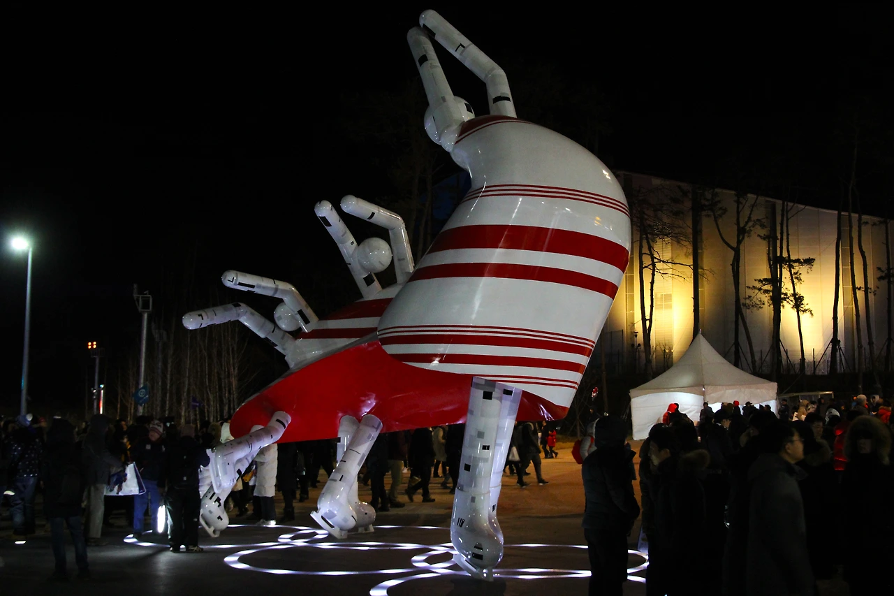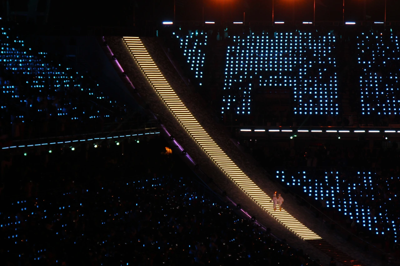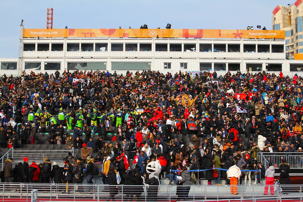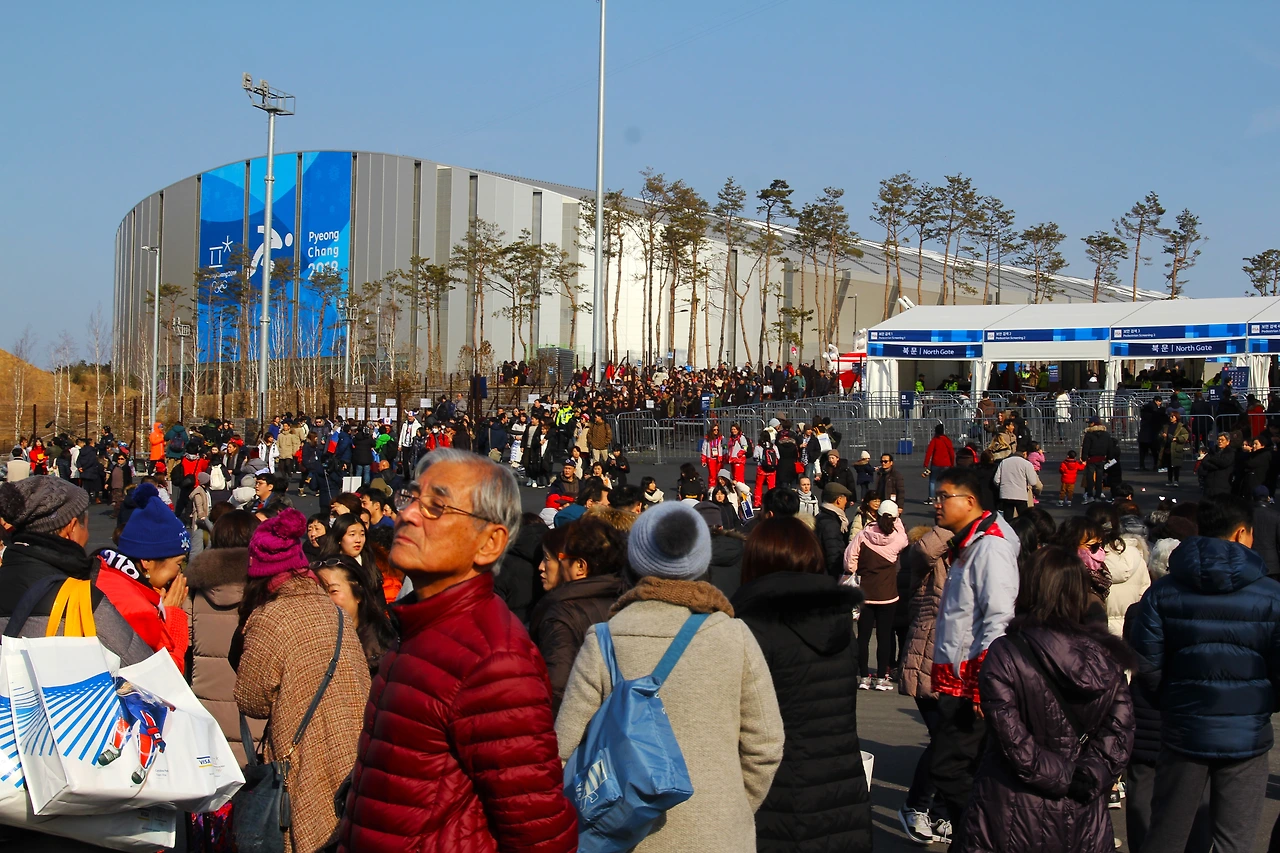 입구에서 한참을 걸어가야 도착할 수 있는 평창 올림픽 스타디움은 개막식과 폐회식이 열리는 동계올림픽의 가장 중요한 장소다. '강원도 평창군 대관령면 올림픽로 200'이라는 주소에서도 볼 수 있듯이 첩첩산중 한가운데 지어진 스타디움이다. 역대 올림픽 개최 도시 중 가장 작은 도시로 손꼽히는 평창. 작디작은 산골 마을 한가운데 이렇게 큰 스타디움이 있는 것이 놀라웠다. 작은 규모와 추운 날씨에 상관없이 수많은 인파가 스타디움에 몰려들었고, 경기장 내 빈 좌석을 찾기가 어려울 정도였다.