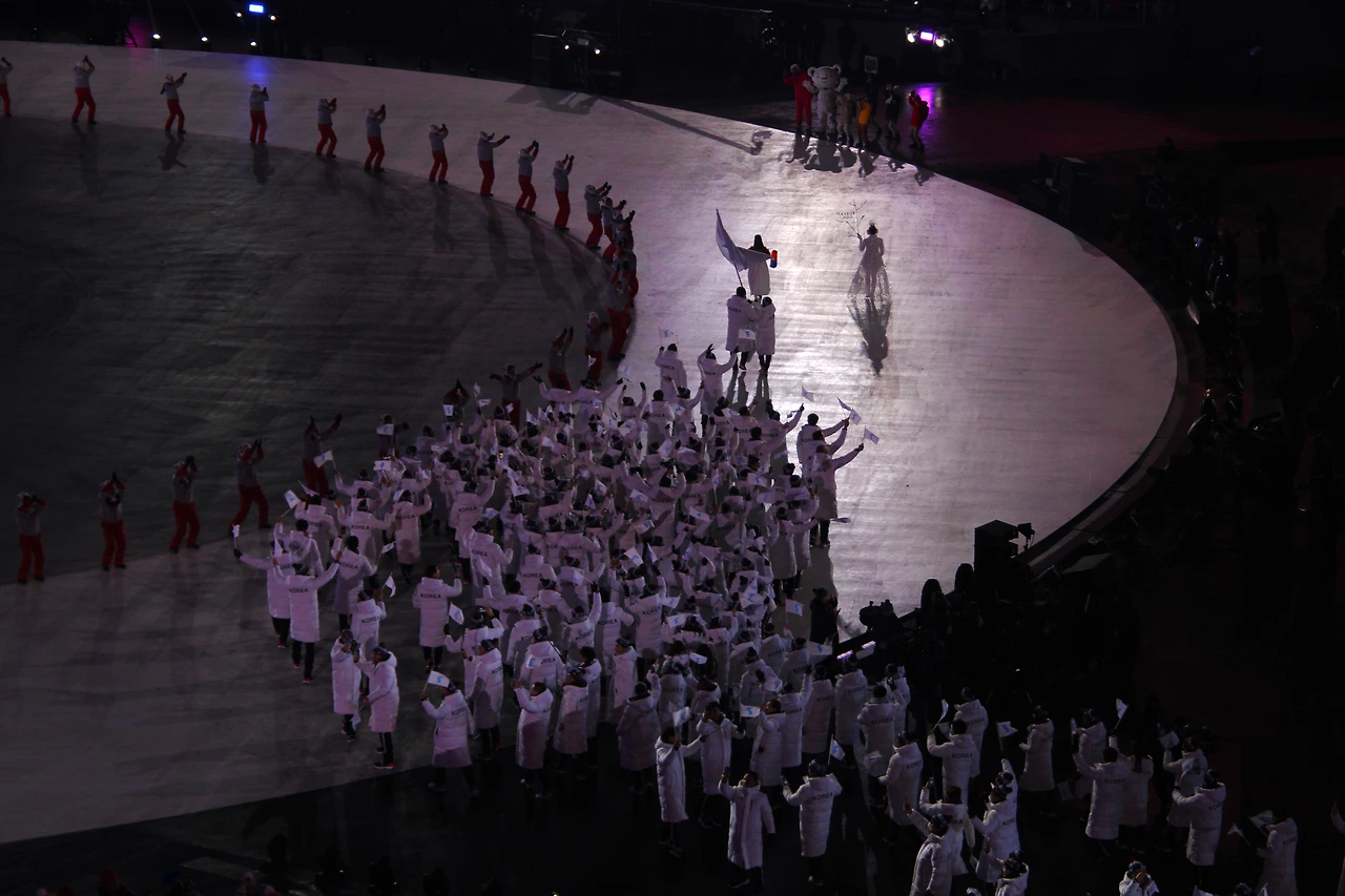 올림픽 개막식의 하이라이트는 선수단 입장이었다. 대한민국에서 열리는 올림픽이라 ABC 순이 아니라 가나다 순으로 참여국들이 입장했으며, 동계올림픽 강국인 노르웨이와 독일 선수단이 가장 많은 선수단을 파견한 것으로 보였다. (노르웨이는 인구 500만밖에 안 되는 국가지만 엄청난 수의 선수단이 파견되었고, 결국 종합우승을 차지했다.) 주인공은 마지막에 등장한다고 했던가. 한국과 북한은 한반도기를 들고 동시에 입장했으며, 문재인 대통령의 축사와 함께 평창 동계올림픽의 개막이 선언되었다.