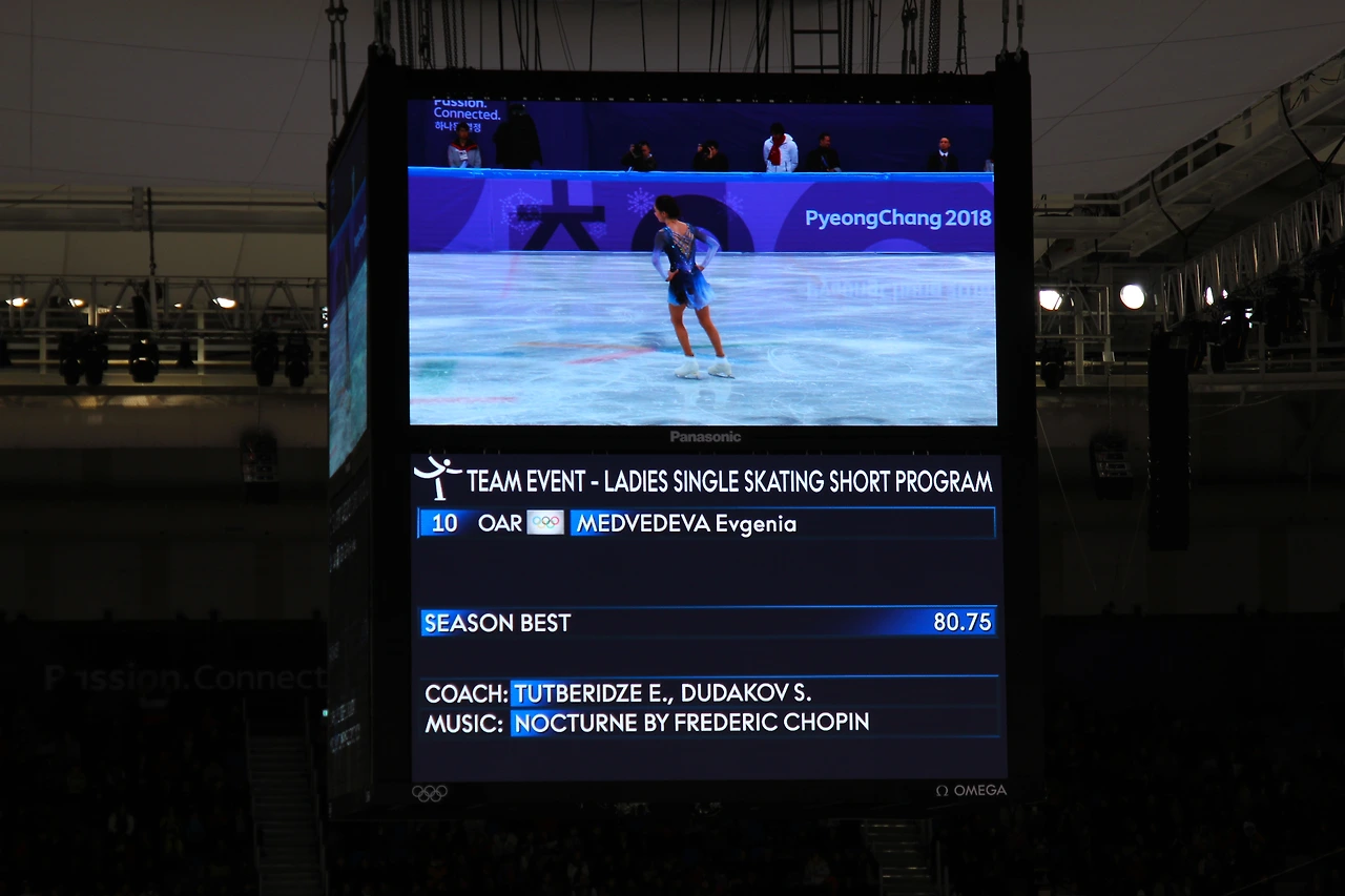 내가 관람했던 피겨 스케이팅은 10개의 국가가 겨루는 팀 이벤트로, 남∙여 싱글, 아이스 댄스, 페어 모두를 볼 수 있다는 장점이 있었다. 중간 점수를 합산하여 상위 5개국을 가려내며, 5개국이 다시 결선을 펼쳐 최종 점수가 높은 국가가 우승하는 종목이었다. 개인적으로 피겨 스케이팅은 실제로 가서 봐도 그다지 와 닿지 않았다. 각종 기술과 예술도가 중요한 만큼 가까이서 봐야 실감이 나는데, 멀찍이 떨어져서 보면 선수들이 어떤 기술을 구사하는지 식별이 잘 되지 않기 때문이다.