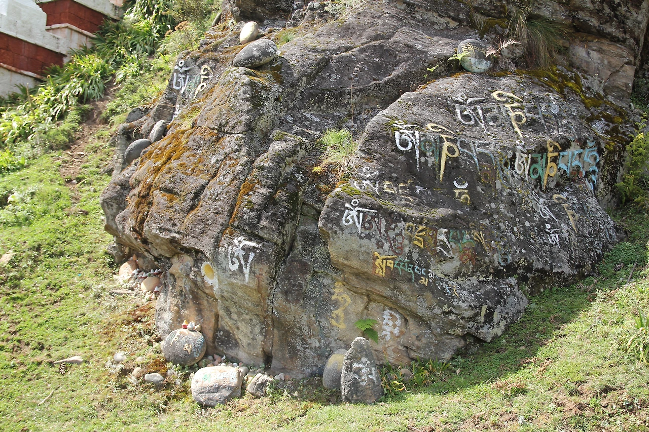 계곡을 넘어가자 3층으로 된 절들이 줄지어 서 있는 것이 보인다. 땀싱 사원과 달리 특별할 것 없는 외관에 실망하려는 찰나, 여기가 신성한 곳이라고 알려주는 오래된 벽들과 알록달록한 종카가 쓰인 바위가 보인다. 영겁의 세월을 거친듯한 벽 내부엔 사람들의 염원이 적힌 듯한 돌들이 빼곡히 박혀있다. 인상적인 벽을 빼면 평범해 보이는 사원인데 이 곳에 꼭 들러야 할 이유라도 있는 것일까. 부탄에서 수많은 사람들이 찾는 곳이라면, 아이돌보다 더 유명한 인물을 빼놓을 수 없다. 욘사마가 겨울연가를 찍었다고 일본인들이 춘천을 찾는 것처럼, 부탄 사람들은 구루 린포체의 흔적을 좇기 위해 쿨지 하캉 (Kurjey Lhakhang)으로 온다.