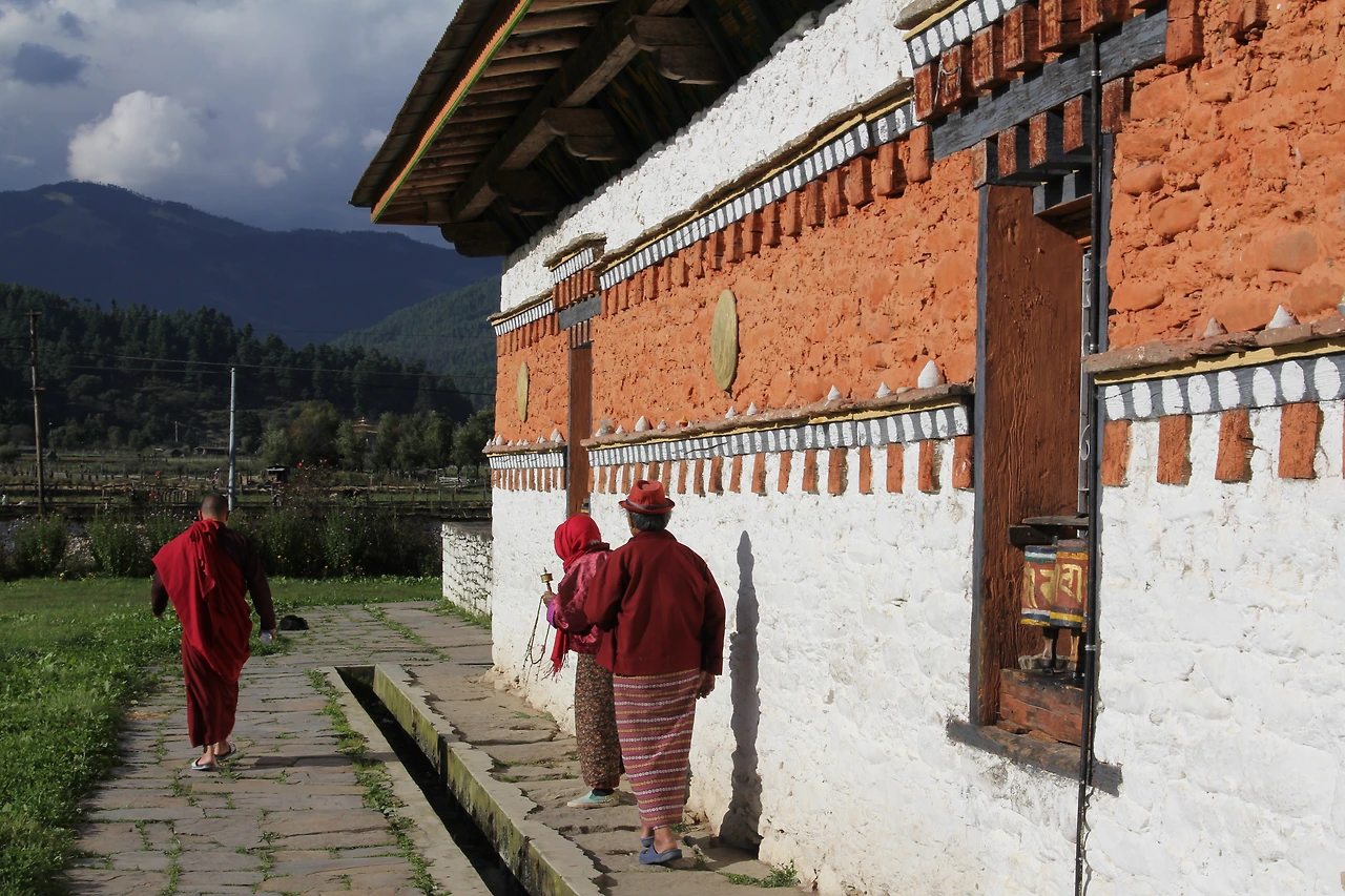 숙소를 나와 걸으니 전형적인 농촌 마을의 모습이 보인다. 발전이 더딘 부탄에서도 붐탕은 현대문명의 때가 훨씬 덜 탄 것 같다. 소떼를 끌고 길 한가운데를 지나는 아저씨, 군데군데 아스팔트가 깨져 맨살이 드러난 흙길, 참카르 강 (Chamkhar Chuu)에서 헤엄치며 놀고 있는 아이들. 붐탕의 변화가 느린 건 부탄을 찾은 대부분의 여행자들이 파로 (Paro), 팀푸 (Thimphu)를 비롯한 부탄 서부 지역을 둘러보는 것으로 일정을 마치기 때문이다. 게다가 도로 확장 공사 때문에 차를 타고 이동하기가 더욱 힘들어지자, 붐탕 (Bumthang)까지 애써 찾아가는 여행자들의 수는 더욱 줄어들었다. 여행자의 수가 적다는 건 굳이 개발을 할 필요가 없다는 것. 덕분에 붐탕을 여행하는 내내 부탄 현지인들의 삶을 더 자세히 볼 수 있었고, 사원 대부분을 나만 독차지할 수 있었다.