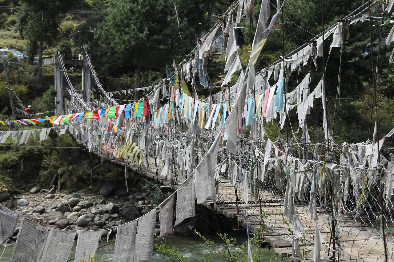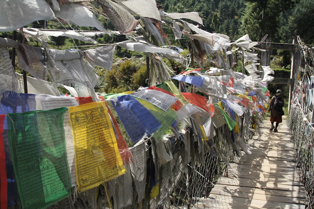 붐탕 계곡의 오른편이 뻬마 링파가 중심이 된 닝마(Nyingma)라면 계곡 건너편엔 구루 린포체가 중심인 겔룩빠(Gelugpa)가 펼쳐진다. 다리를 건너가는 길엔 또 다른 전설이 숨어있다. 한 여신이 구루 린포체를 만나기 위해 강 위에 돌다리를 만들었는데, 이를 시기한 붐탕의 악마가 다리를 부숴버린 것. 따시는 다리 아래로 깨진 돌들의 흔적을 보여주며, 붐탕은 수많은 전설들이 전해지는 아름다운 땅이라고 강조한다.
