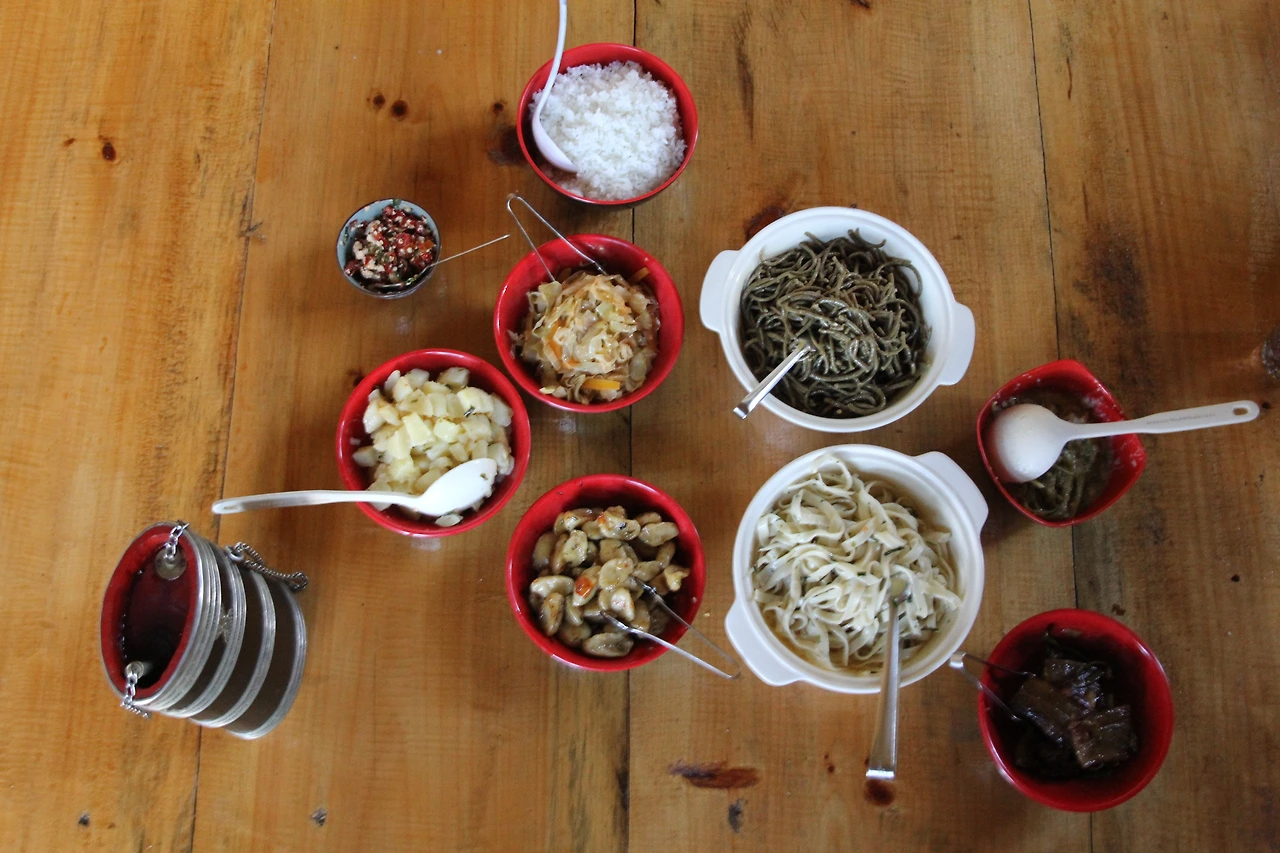 부탄의 농가에 들어가 앉아있으니 농민들이 정성껏 준비한 식사가 나온다. 집에 살고 있는 가족들도 함께 자리에 앉아 식사를 할 줄 알았는데, 그들은 이미 점심을 먹은 상태다. 따시는 어차피 영어를 못 해 대화하기 어렵다며 나를 위로해준다. 하긴, 내가 원하는 모든 걸 가질 수 있는 건 불가능한 일이니까. 대신 부탄의 현지 식사가 얼마나 맛있는지 느껴본다. 양념에 버무린 고기도 맛있었지만, 수많은 고추로 뒤덮인 부탄 음식에 더 손이 간다. 이 곳이 아니면 다시는 느껴볼 수 없는 맛인 데다, 이 시간이 아니면 다시는 접하지 못할 경험이기 때문이다. 점심식사를 배불리 먹고 농가 옆에 있는 마당으로 가서 며칠 만에 다시 활을 잡는다. 이번엔 뭔가 제대로 보여줘야겠다고 생각하니 손에 힘이 잔뜩 들어간다. 내 손을 떠난 화살은 과녁을 향하기는커녕 뒤편의 나무 높은 곳에 가서 박힌다. 따시는 며칠 전과 다름없는 나의 형편없는 활 솜씨를 비웃으며 나무 위로 올라가 박힌 화살을 빼낸다. 에휴, 부탄에 만약 다시 올 기회가 있다면 활 쏘는 연습을 엄청 해야겠다. 따시는 나를 보고 한국인들은 활을 못 쏜다는 편견을 가졌기 때문이다.