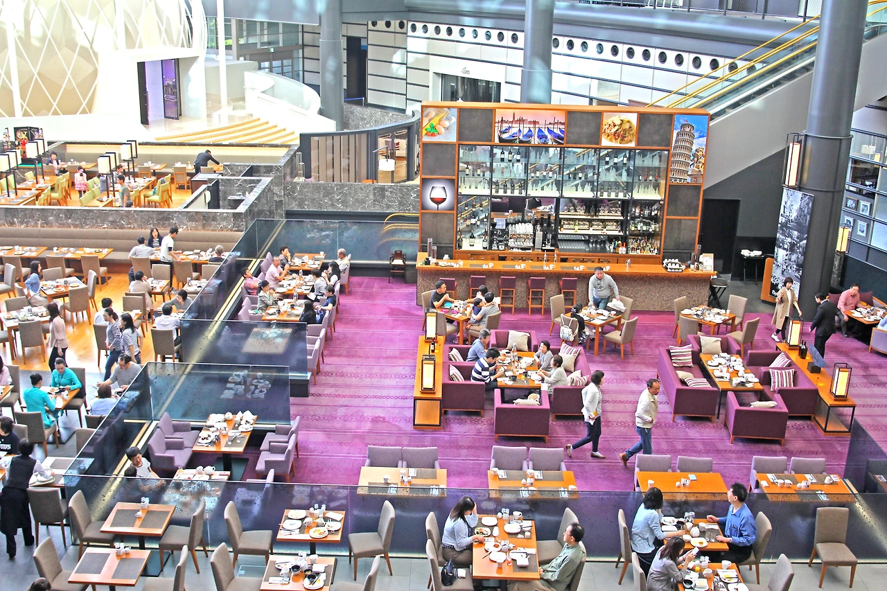 힐튼에서 제공하는 아침은 채광이 잘 되는 2층 뷔페에서 먹었다. 조명이 없고 실내인데도 아주 밝아 야외에서 먹는 느낌이 들 정도로 설계자의 세심한 관리가 돋보인 뷔페였다. 힐튼 객실수가 1052개라, 줄을 서서 대기해야 할 정도로 사람이 많은 건 단점이긴 하다.