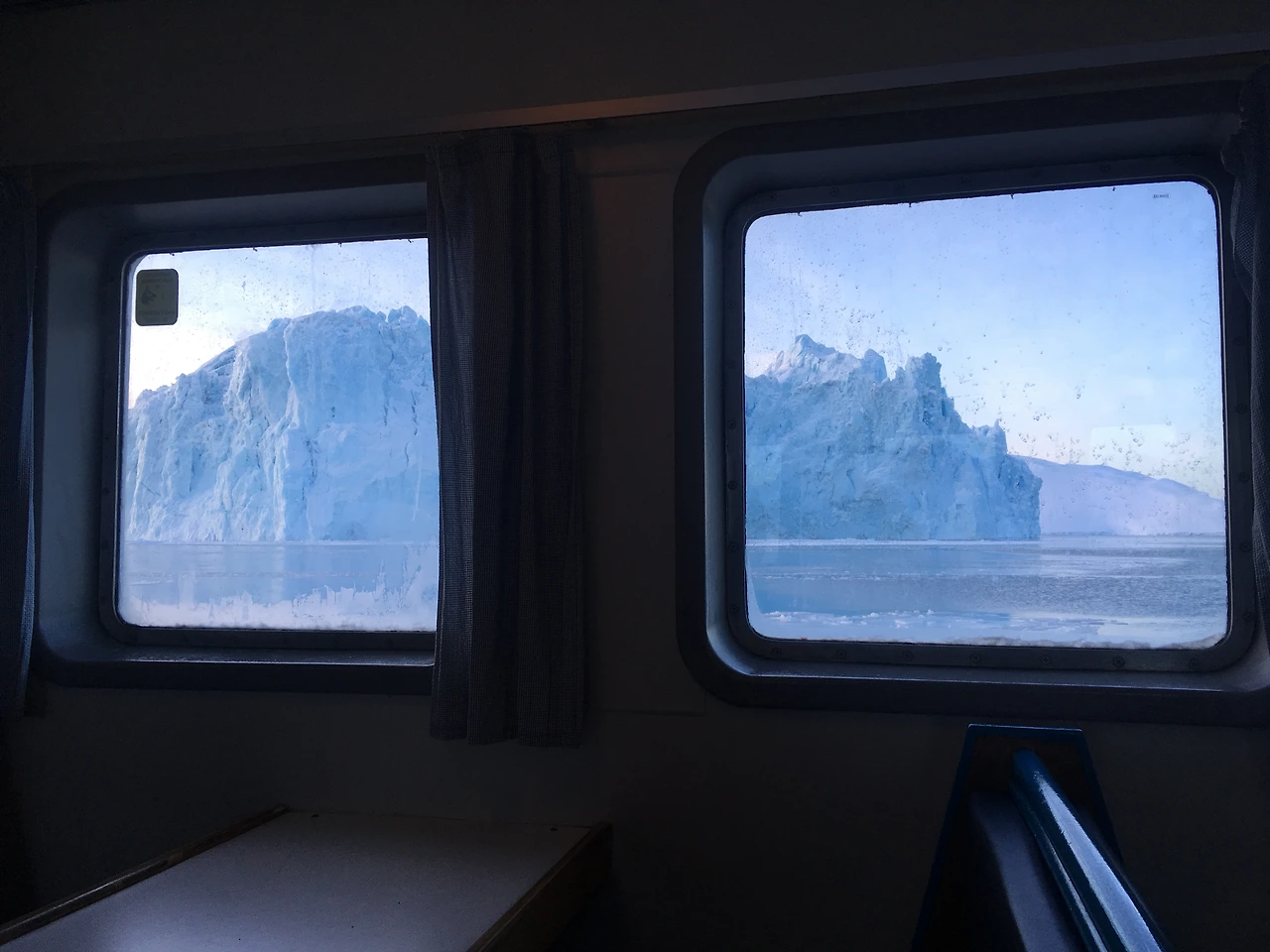 그렇게 한참을 빙하들을 느끼다 볼과 귀를 쓰리는 칼바람에 배 안으로 들어올 수밖에 없었다.