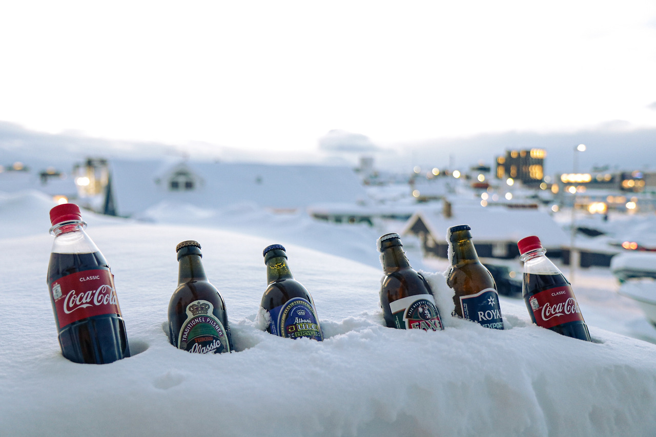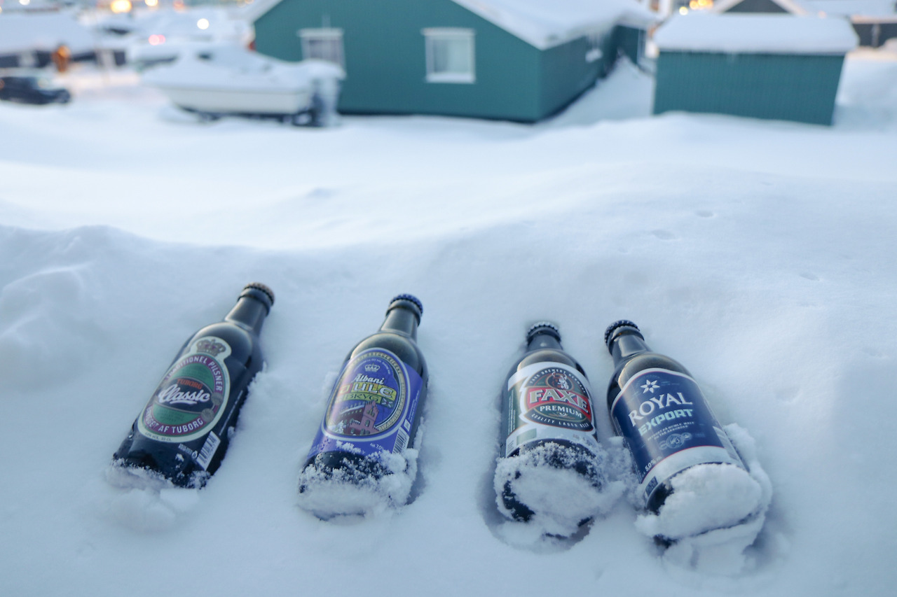 맥주들이 다 병맥주라 들고 오는데 상완이두근(ㅋㅋ) 운동이 따로 필요하지 않았는데 재활용이 꽤 되었는지 자세히 보면 세월의 흔적이 보였다. 과연 이 병은 몇 년에 걸쳐 몇 사람들을 취하게 만들었을지 쓸데없는 궁금증도 생겼다. 술 알못 나에게는 엄청 막 특별한 맛은 아니었지만 또 그린란드가 주는 특유의 분위기에 마시는 거 아니겠습니까. 나중에는 눈이 쌓인 곳에 맥주를 꽂아 감성 샷도 몇 장 남겨주었다. 이후 그린란드 여행이 끝날 때쯤 친구가 맥주병을 기념으로 가져갈 거라고 챙겼었는데 Kangerlussuaq 면세에서 판매되는 엄청 화려한 그린란드 맥주 세트를 발견하고 더 신나 했던 기억이 선명하다. 친구야 건강하자 우리.