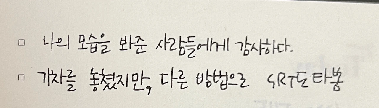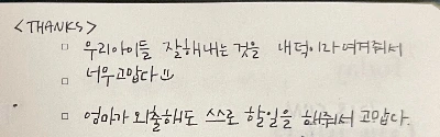 바쁘다는 이유로, 혹은 오늘은 망했다라는 이유로 감사한 일을 적지 않는 나의 모습을 바라보고 있으면, 내가 느끼고 싶지 않은 감정을 그리고 정제되지 않은 감정들을 내 소중한 사람들에게 쏟아붓고 있는 모습을 발견한다.