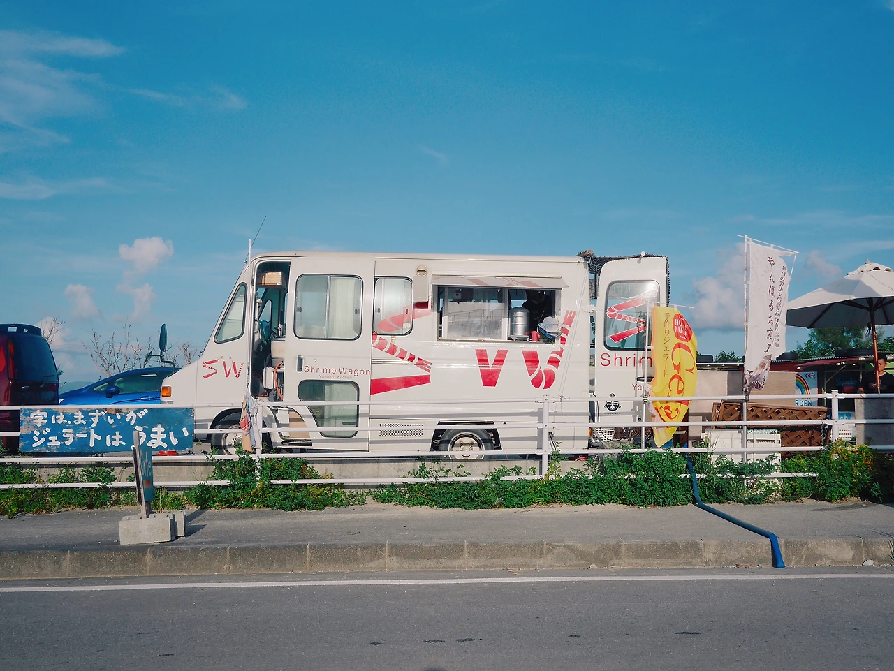 쉬림프 웨건은 코우리 대교를 타고 쭈욱 달려 그 끝에 도달하면 주차장 우측에서 바로 찾을 수 있다. 꽤 인기가 많은 곳으로 알려져 있다고 해서 왔는데, 막상 도착해보니 생각보다 사람이 없어서 의아했다.