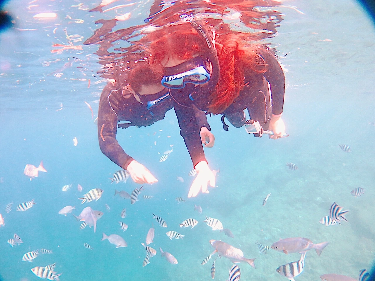 다만 아쉬운 것은 좀 더 밑으로 내려가 더 많은 물고기들을 자세히 보고 싶었는데, 장비는 물론이고 다이빙 경험도 없어 보고 싶은 만큼 못 본 것이 많이 아쉬웠다. 이렇게 여행을 다니면 자연스럽게 파생되는 취미가 하나씩 추가로 생기겠구나 하는 생각을 하며 다시 처음 출발했던 장소로 이동했다. (물론 다시 돌아갈 때도 병아리떼처럼 가이드 분의 부표와 함께 천천히 이동했다.)