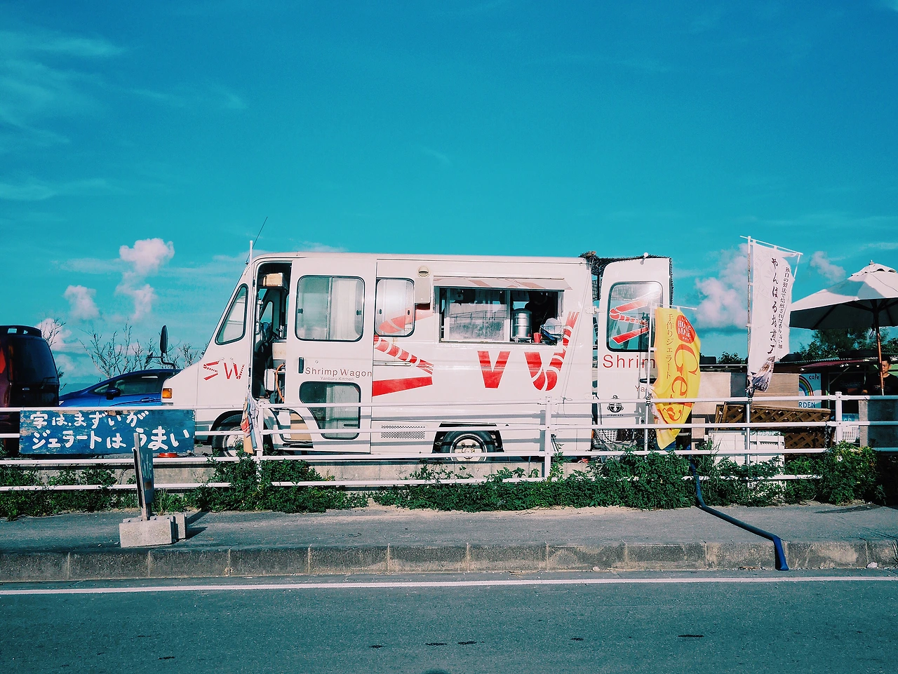 오키나와로 여행을 떠나기 전에 8월 초에는 태풍이 랜덤하게 오는 시기라 잘못 걸리면 여행하는 내내 비가 올 수도 있다는 무시무시한 정보를 얻게 되었다. 그것도 하루에도 수십 번씩 바뀌어 방금 비가 내려서 우산을 펼치면 바로 쨍쨍해지는, 변덕이 매우 심하다고... 그리고 심지어 어마어마하게 덥다는 소문까지! 더위를 많이 타는 사람으로서 단단히 각오를 하고 가야 했다. 그나마 다행인 건 밖은 더워도 가게 안에는 대부분 에어컨을 빵빵하게 틀어둬서 이동하는 중에만 더위를 잘 피할 수 있으면 괜찮다고 해서 약간 위안 삼기로 했다.