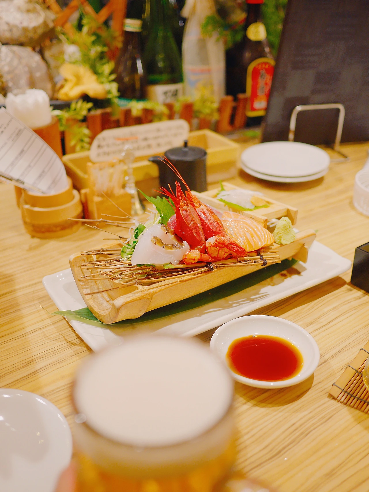 결국 장고 끝에 이 곳을 방문한 한국인들이 가장 많이 주문한다는 888엔짜리 모둠 사시미 세트를 주문했다. 물론 오키나와 특산 맥주인 오리온 맥주도 잊지 않았다. 오리온 맥주가 나오자마자 우리는 누가 먼저랄 것도 없이 바로 잔을 들고 철쑤(Cheers!)를 외쳤다.