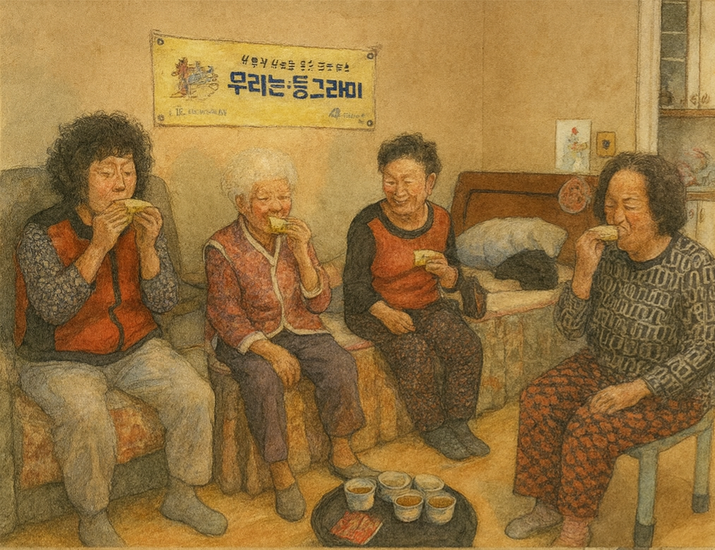 각자의 집에 초대해서 함께 밥도 먹고, 자식들이 뭐라도 보내오면 다 불러서 잔치를 벌이기도 했다.