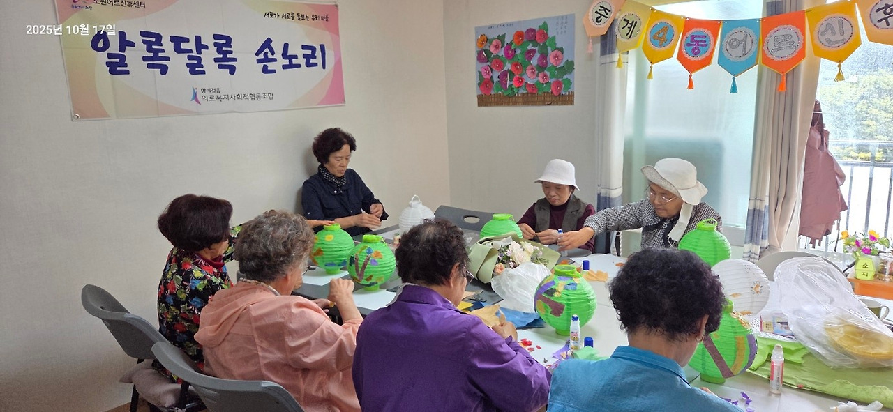 '알록달록 손노리'에서 한지등을 만드는 어르신들