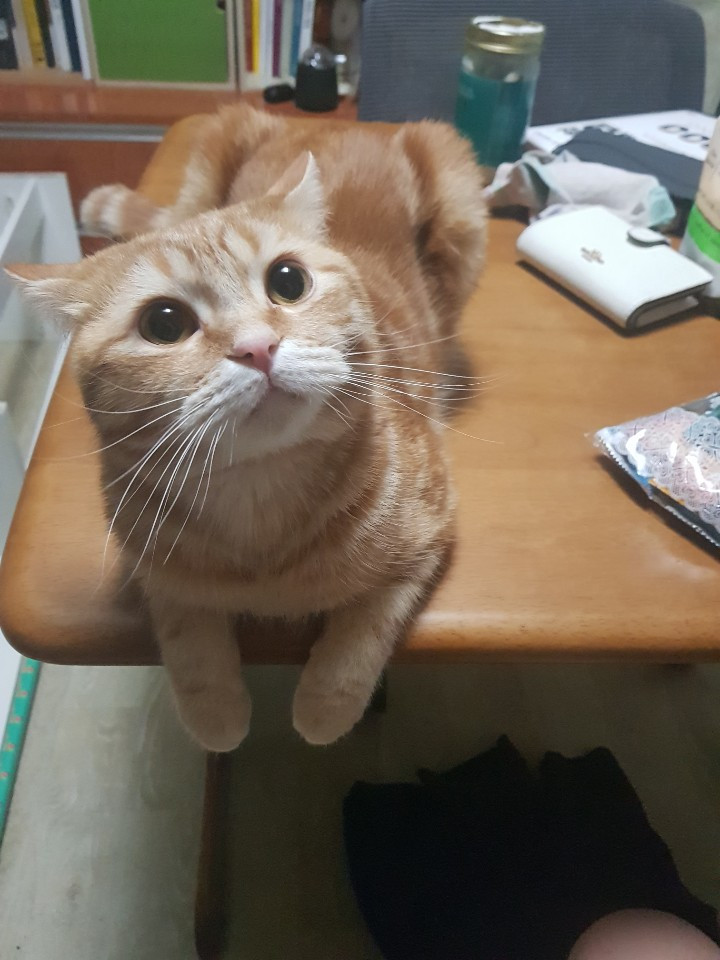 내가 음식을 먹고 있으면 달라는 의미로 애교를 부린다. 내 손이나 발에 자신의 머리를 계속 부빈다.