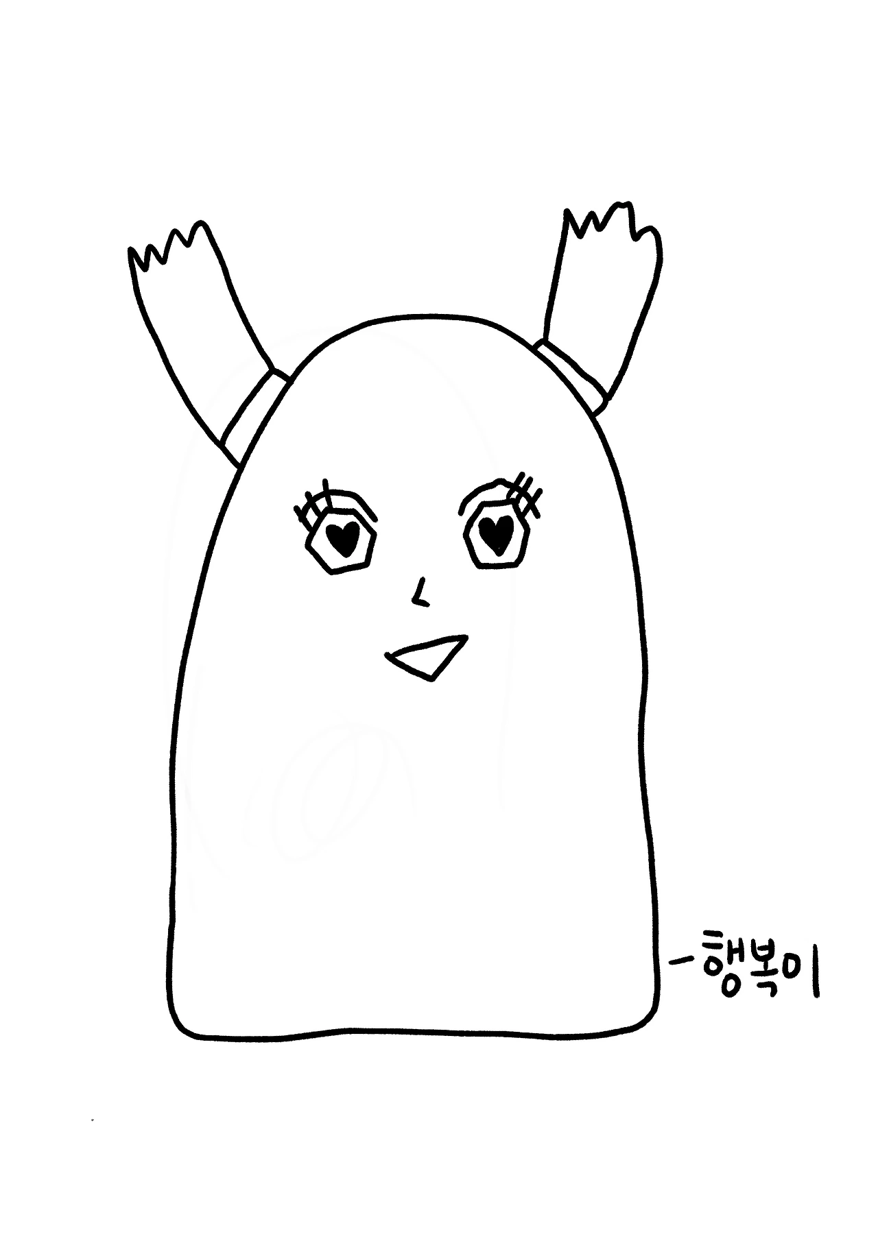 (간호사님께서 이불을 말아 커버를 씌워 준 것에 내가 머리를 묶고 눈, 코, 입을 그려 행복이를 만들어냈다.)