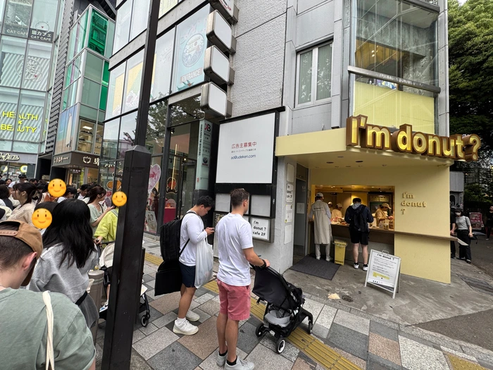 2박 3일간의 도쿄 출장을 마치고 오사카로 돌아오는 날이었습니다. 어제는 비가 많이 내렸는데 오늘은 비는 그치고 꿉꿉하고 후덥지근하더군요. 일은 15시 조금 넘어서 끝났지만, 돌아가는 신칸센까지는 시간이 좀 남아서 하라주쿠에 있는 I'm Donut? 에 들렀습니다. 단 것도 안 좋아하고 빵도 별로 즐겨 먹지는 않습니다만, 도쿄 출장 가기 전에 아내가 요즘 유명한 가게라며 먹어보고 싶다고 했던 게 생각났습니다. 도쿄에 지점 4개, 후쿠오카에 지점 1개가 있고, 본점은 나카메구로(中目黒)이지만 시나가와에서 신칸센을 타야 하니 야마노테선인 하라주쿠 지점으로 갔습니다. 솔직히 그냥 SNS로 부풀려진 과대광고 맛집이라고 생각합니다만, 안 먹어보고 욕할 수는 없으니 사가 보기로 했습니다. 가게 이름이 I'm Donut?인데 Am I Donut? 이 맞는 표현이 아닐까 하는 생각도 듭니다만, 영어는 전혀 할 줄 모르니 그냥 그러려니 합니다.