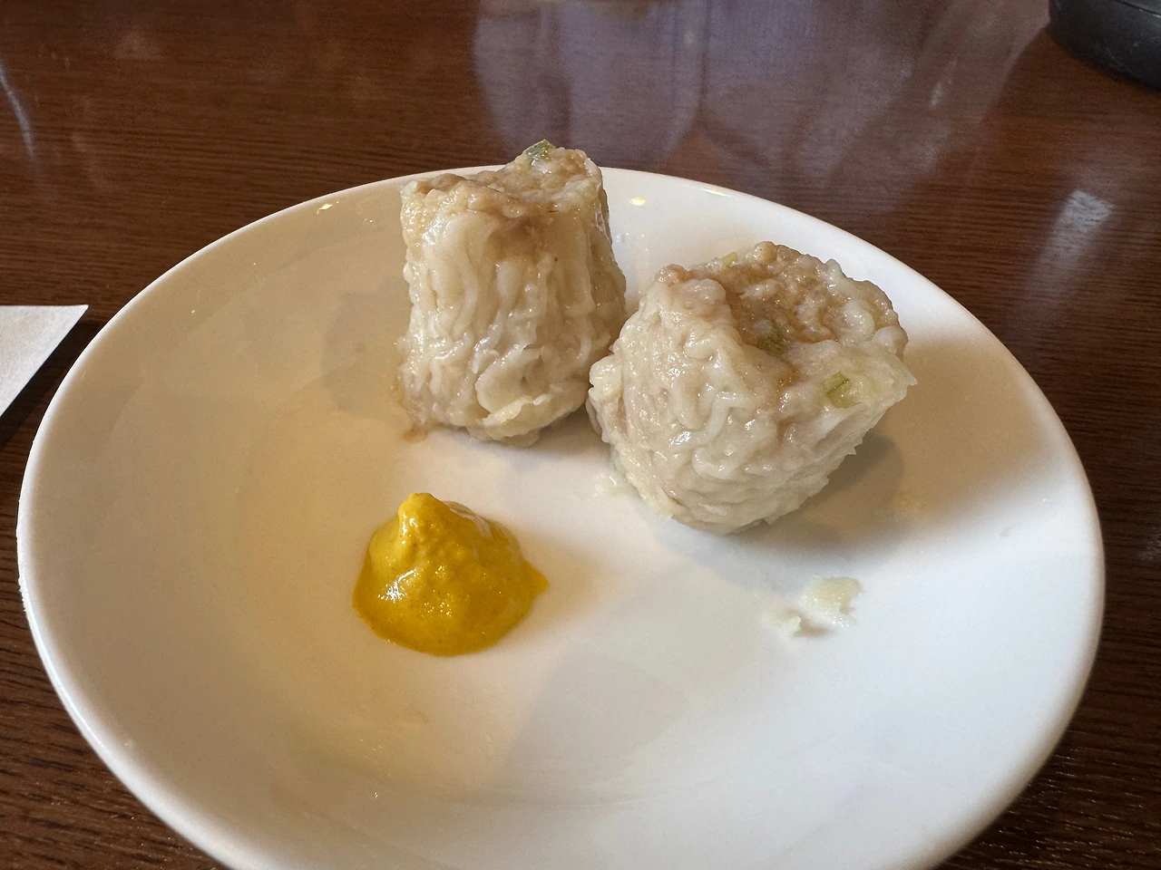 먼저 쇼마이가 나왔습니다. 평범한 쇼마이처럼 보이는데 꽤나 신선하더군요. 큼지막한 연근이 들어가 있어서 사각사각 씹히는 맛이 좋았습니다. 개인적으로 마늘 생강향이 좀 있었으면 좋겠다고는 생각했습니다만, 이건 이거대로 괜찮은 것 같습니다.