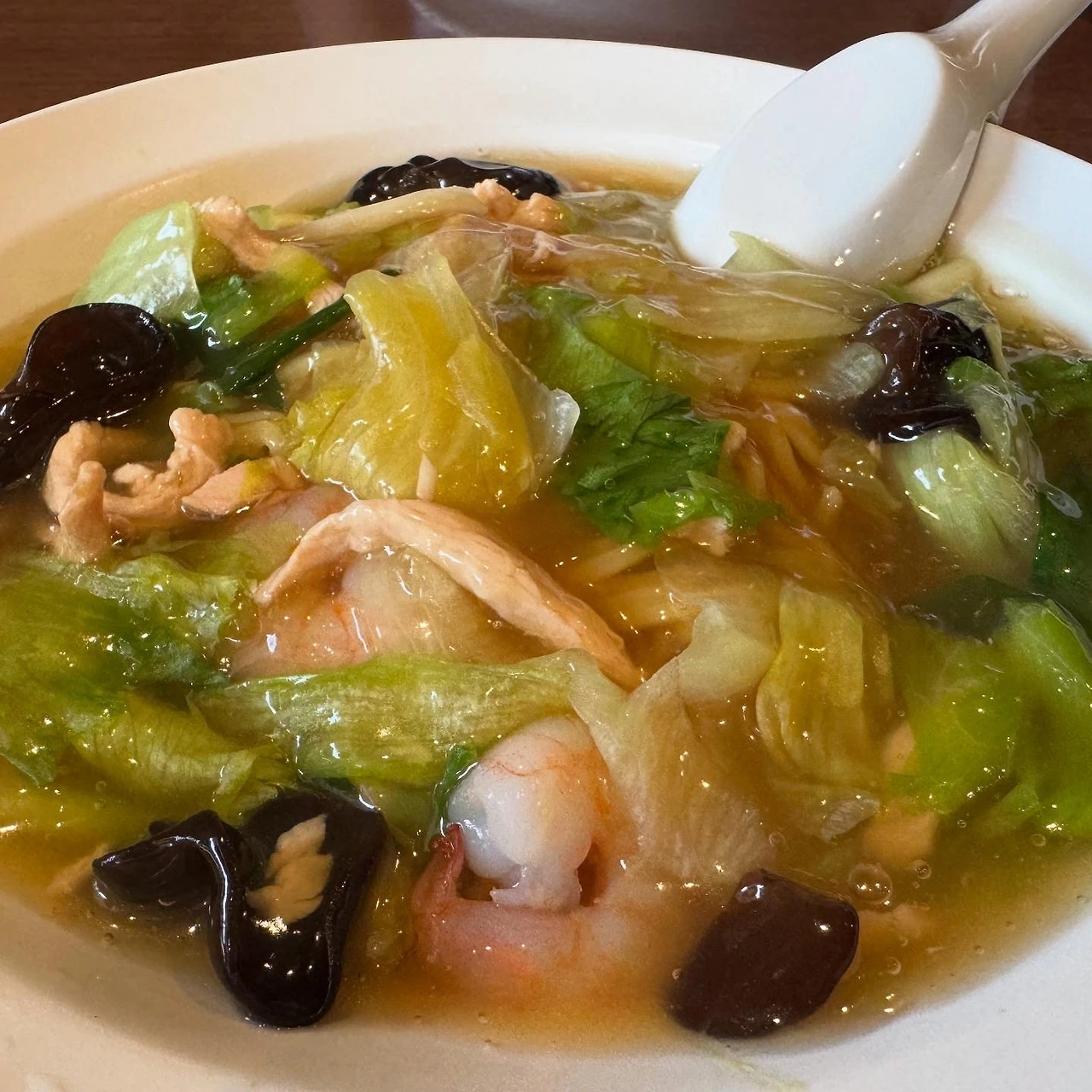 항공샷입니다. 참고로 일본식 중국집에서 "소바"가 붙으면 우리가 흔히 생각하는 라멘이 나오기도 합니다만, 이번 음식과 같이 걸쭉한 소스인 "앙"(あん)이 올라간 면요리가 나오기도 합니다. 이렇게 앙이 올라간 음식에는 앞에 접두사로 "앙카케"(あんかけ)가 붙기도 합니다. 참고로 이곳은 야키소바도 취급하는데 우리가 흔히 생각하는 야키소바와는 다릅니다. 일본 중국집에서 야키소바를 시키시면 앙카케 튀긴 면이 나옵니다. 가게에 따라서는 상하이 야키소바라는 이름으로 제공하기도 하고, 나가사키(長崎)의 야키짬뽕(焼ちゃんぽん)과도 비슷한 요리입니다.