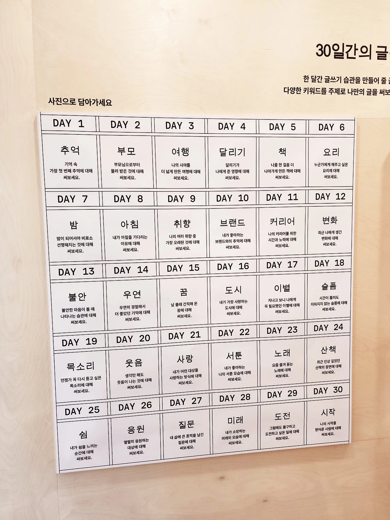 제시해 준 글감들로만 짧을 글을 쓰더라도 30일은 글을 쓸 수 있다.
