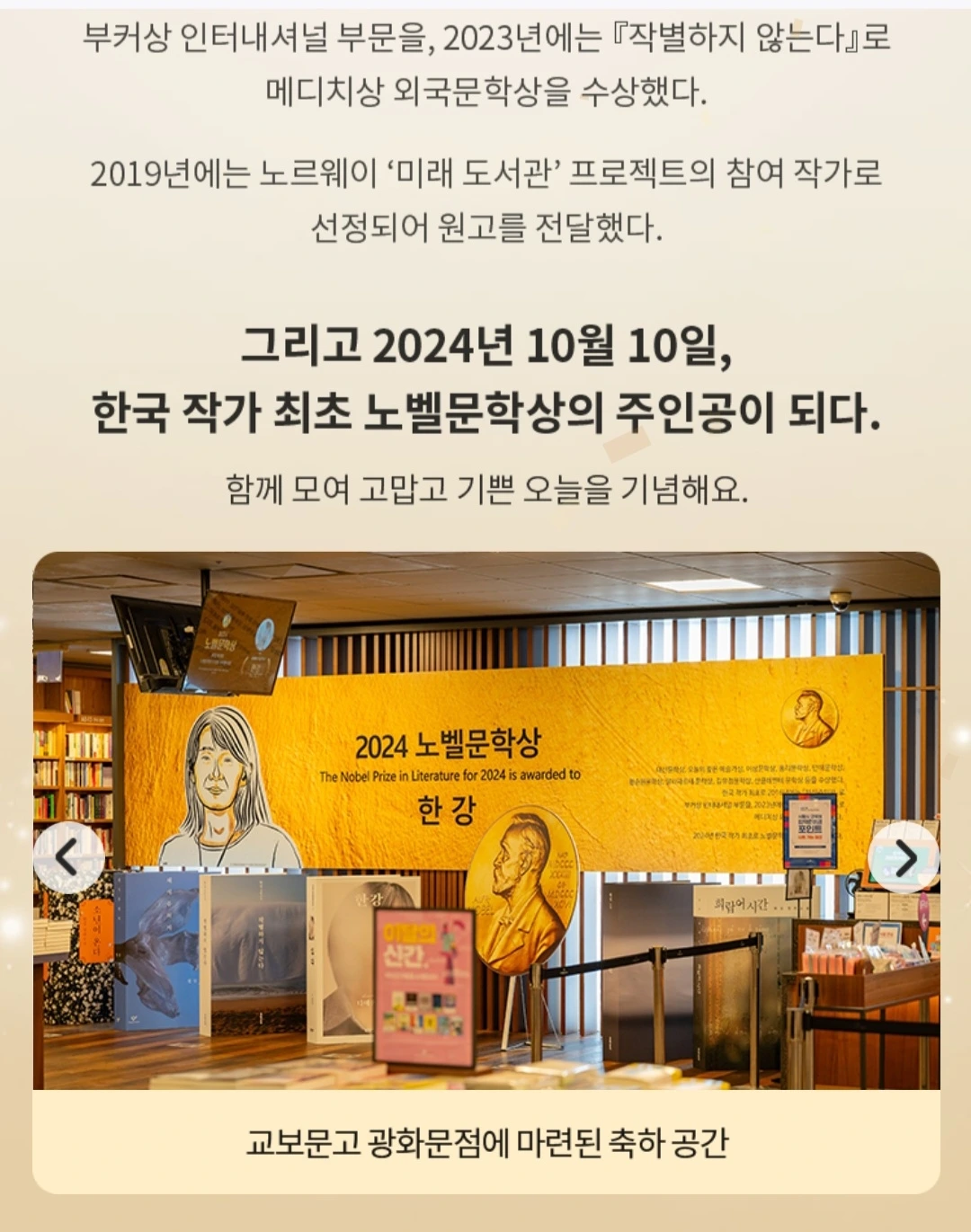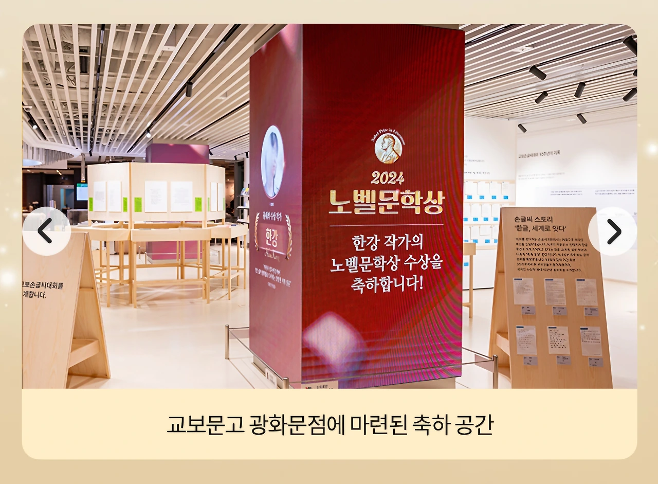 교보문고에선 한강 작가의 노벨문학상 수상을 축하하는 부스를 운영하고 있다.