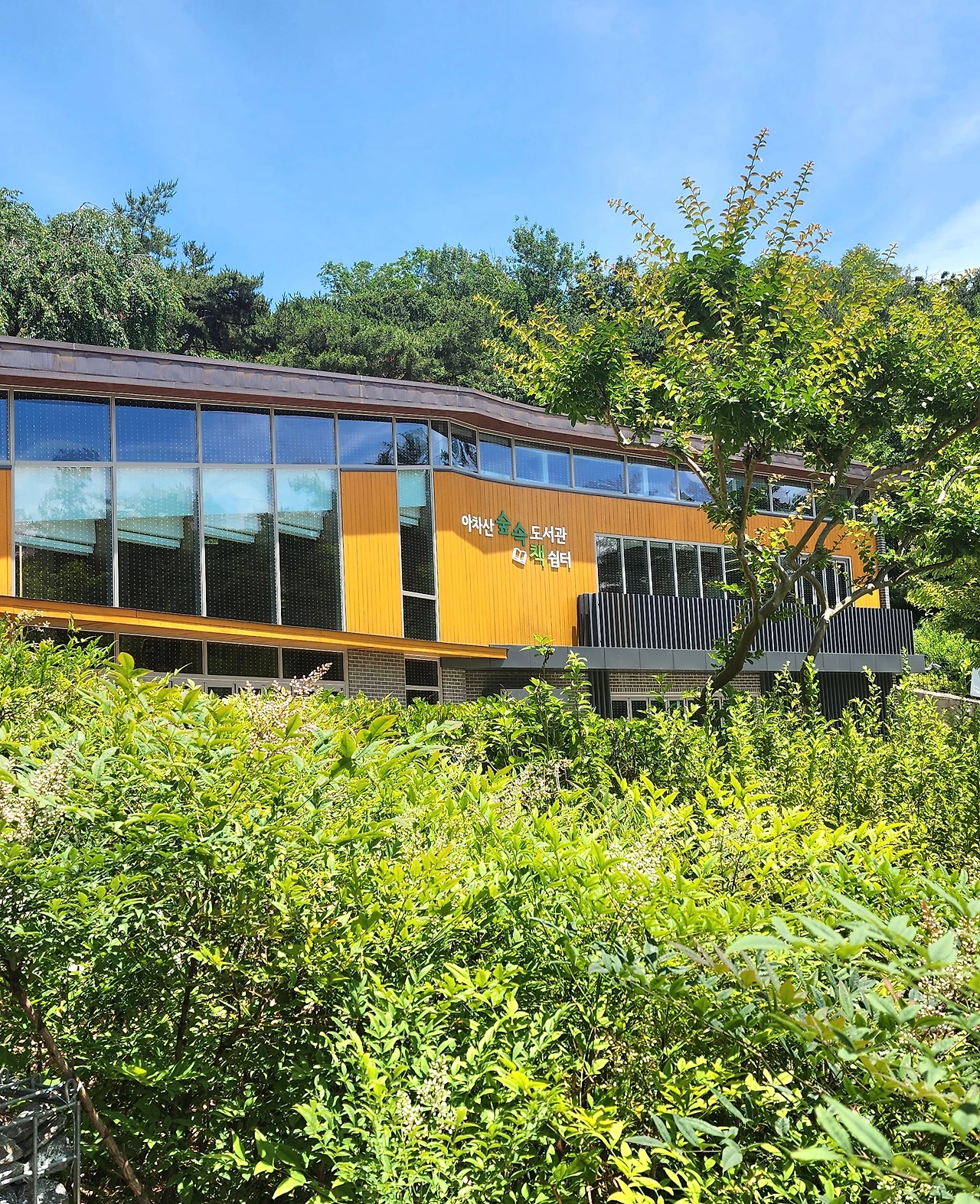 2022년에 개관한 아차산숲속도서관은 71석의 열람석이 있는 2층 건물의 자그마한 도서관이다.