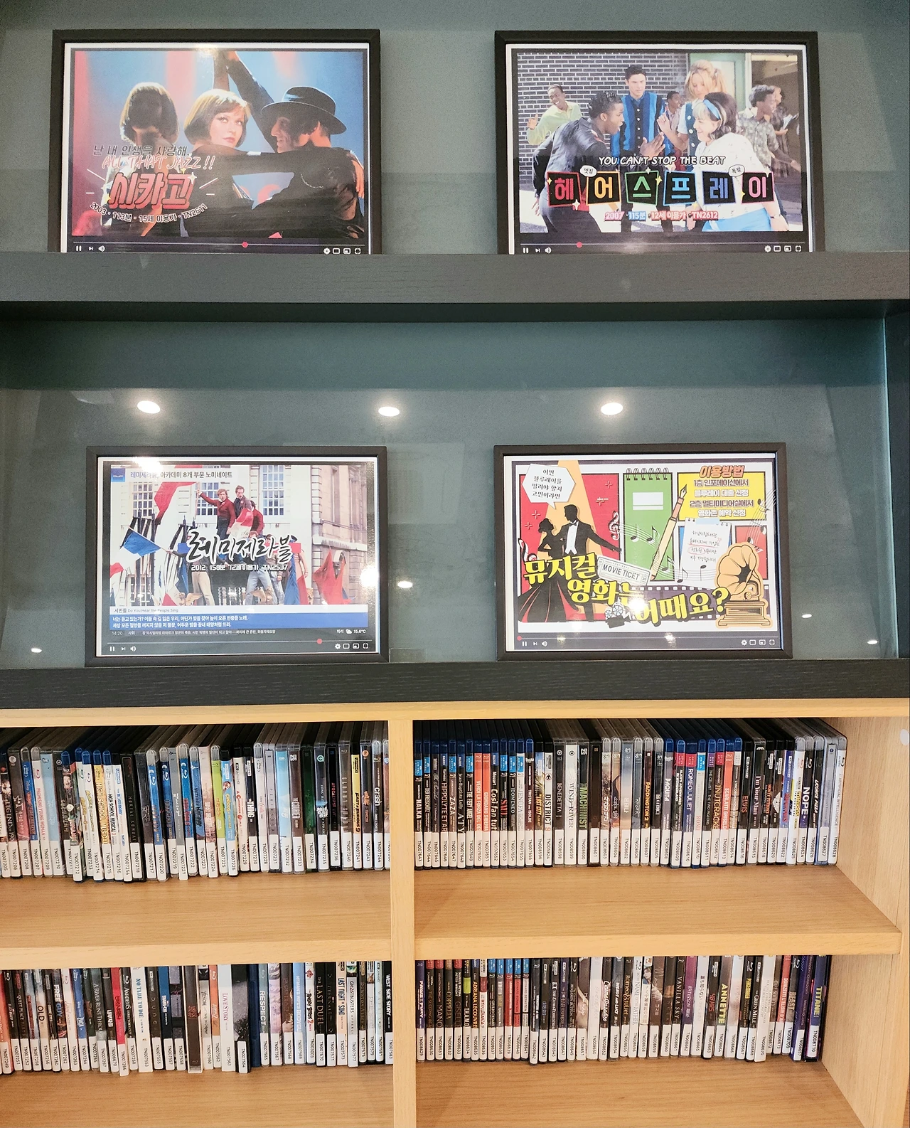 하남시 디지털도서관 1층 라운지에 한쪽 벽면을 채운 건 책이 아닌 VOD 영화들이다. 1000여 종이 넘는 영화들이 준비되어 있어 대여 신청을 한 후 이용할 수 있다.