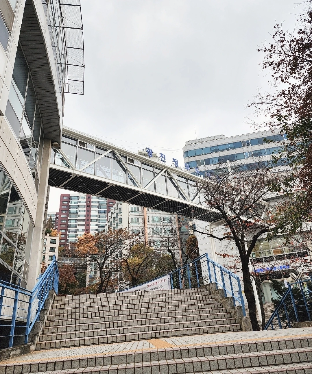 광진구 광장동에 있는 광진정보도서관은 특이하게 두 개의 동으로 나뉜다.