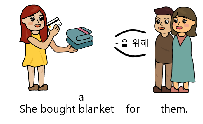 그러므로 두 목적어 사이에는 [누구]를 위해 그 동작을 했다는 표시를 하기 위해 목적이나 이유의 뜻을 가지는 for를 사용한다.