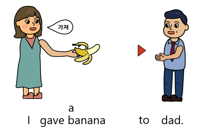 그래서 직접 목적어 [ 무엇 ]를 먼저 사용할 땐, 전달받는 대상 [ 누구 ] 앞에 적절한 전치사를 사용해 문장의 정확한 이해를 돕도록 한다.
