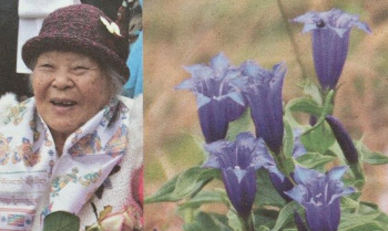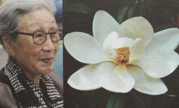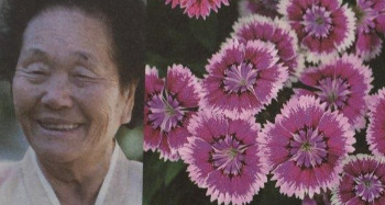 "꽃 속에 동그란 무늬를 가지고 있는 꽃. 단단한 것을 무르게 하는 그 씨앗과 바위에서 피어나기도 하는 모습은 지지 않는 강한 마음을 가지고 계신 송신도 할머니를 떠오르게 합니다. 함께하는 사람들과 손잡으며 10년의 재판을 견디셨던, 비록 재판에는 졌어도 나의 마음만은 지지 않았다고 당당하게 말씀하시는 송신도 할머니, 오히려 일본군'위안부' 문제의 올바른 해결을 위한 캠페인, 시위, 증언에 참여하시며 인권운동가로서의 모습을 꽃피우셨고, 1997년에는 일본 내에서 인권상을 수상하셨습니다."