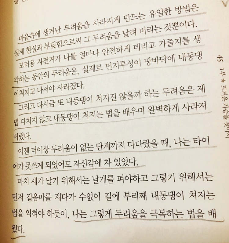 아직 자전거를 탈 줄 모르지만, 자전거를 타기 위해 연습한 이들은 알 것이다. 수없이 넘어지고 실수하고 핸들을 움직여야 한다는 것을. 체 게바라의 말처럼 인생은 가만히 있는다고 해결되지 않고 두렵다고 겁만 낸다고 저절로 풀리지 않는다.
