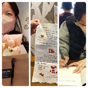 작년 이모의 죽음 이후 부랴부랴 급하게 부크크에서 책을 낸 나는 지난달 개인 사정으로 참석을 못 했다. 드디어 오늘 미리 주문한 책을 가져다 드리니 볼펜을 꺼내 사인을 해달라고 하신다. 기획 출판이 아니라서 대놓고 사달라고 말씀드리기가 그랬는데, 부모님 같고 선배님 같은 이분들은 평범한 문구에도 좋아하시며, 감동을 되돌려주신다.