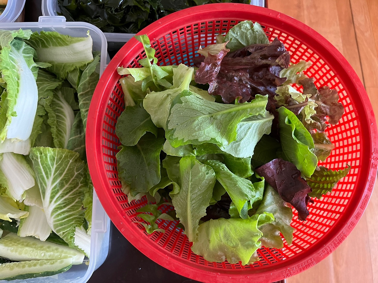 기존에 있던 배추와 오이. 어제 5일장에서 동생이 사 온 미역. 빨간 바구니에 가득 담긴 귀여운 잎들. 오늘 아침은 쌈정식이다.