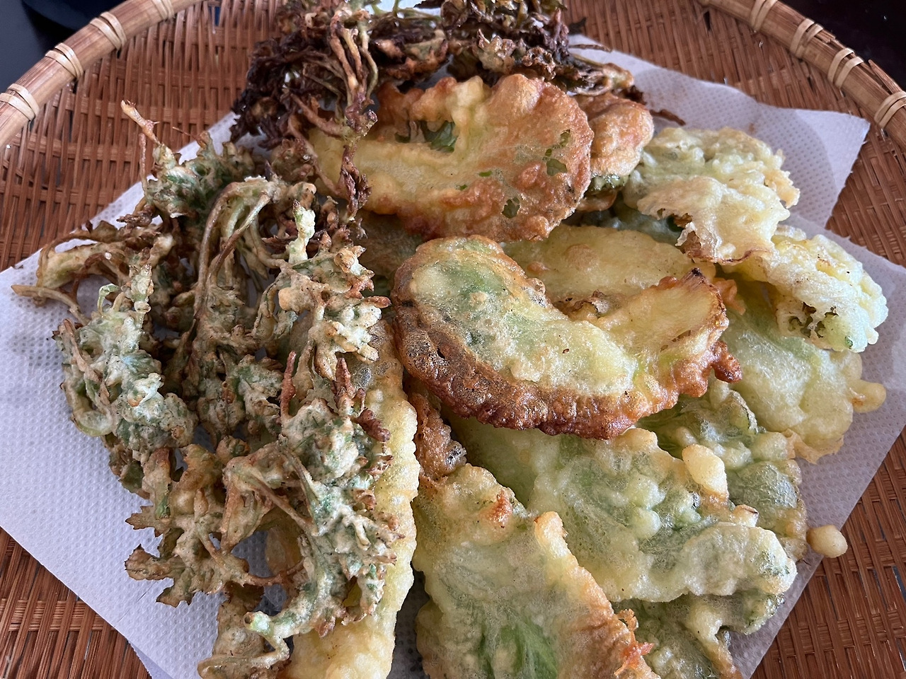 그 말에 홀라당 넘어가 한 입만 먹는다는 게 서너 입 먹었다. 유전자 조작 제품일 가능성이 있지만, 그냥 아이와 맛있게 맛보았다. 나만의 일탈이다. 머리가 약간 어지럽고 속이 조금 불편했지만, 늘 있는 일은 아니니까 넘어갔다. 그런데 오늘 아침, 갑자기 어머니는 멋을 부려 잎채소를 튀긴 것이다.
