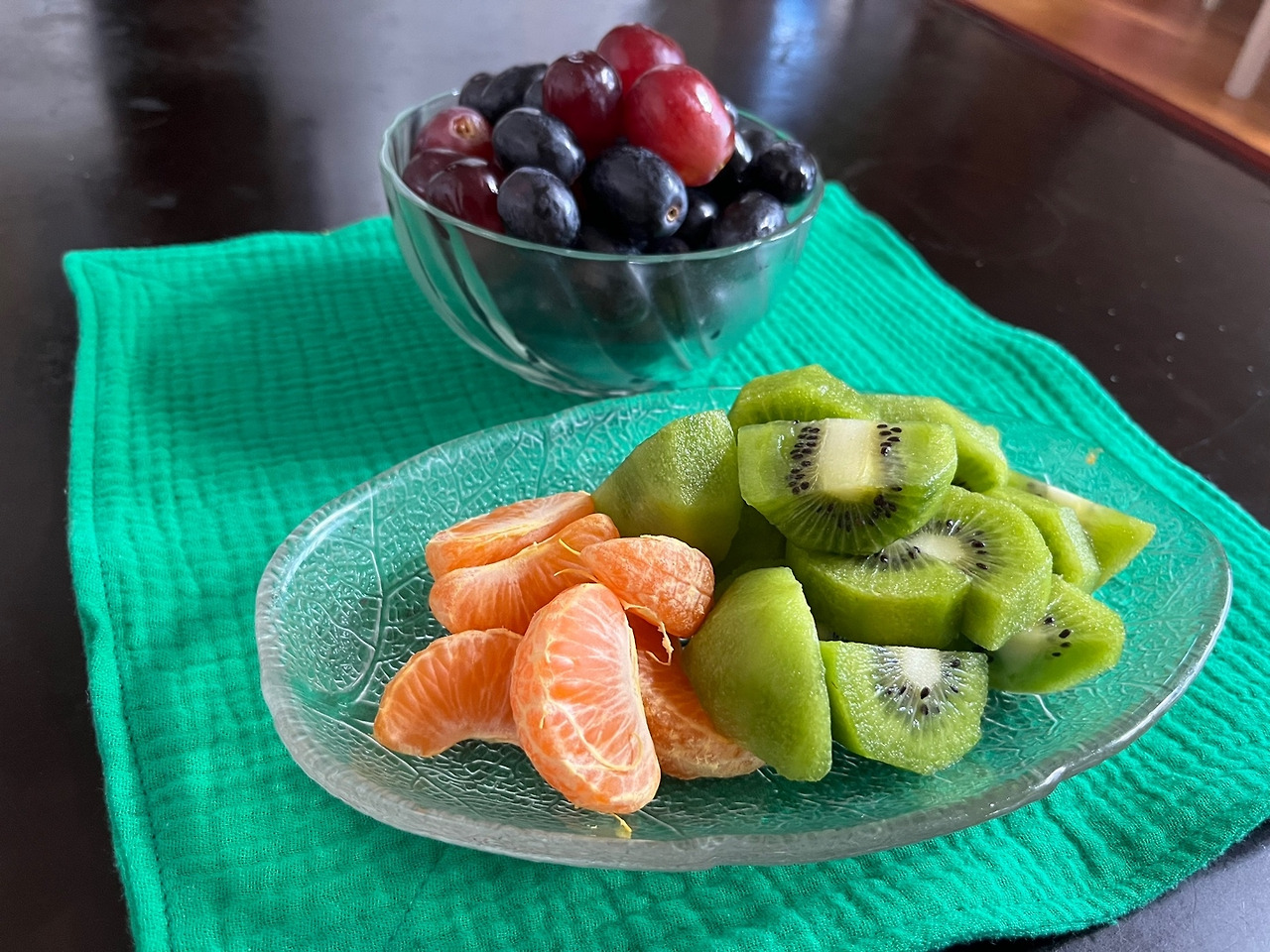 복숭아, 체리, 키위, 파인애플, 참외 등은 체질과 맞아 먹을 수 있다. 어제 윗집에서 포도와 키위를 현관 앞에 놔두었길래. 감사하게 그림의 떡이 아닌 직접 맛볼 수 있는 실물이 되었다.