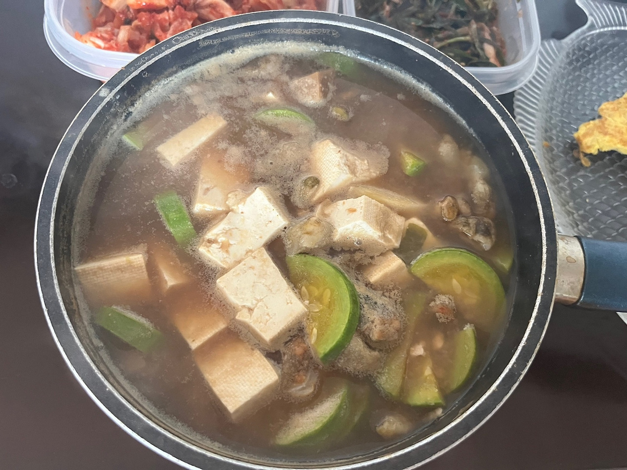 얼마 전 주문한, 새우젓과 멸치젓 들어간 새 김치와 된장찌개, 멸치볶음을 곁들여 밥을 먹었다. 어머니는 딸이 자신이 조리하는 과정을 보며 익히기를 바라는데, 아직 그 단계까지는 못 가겠다.