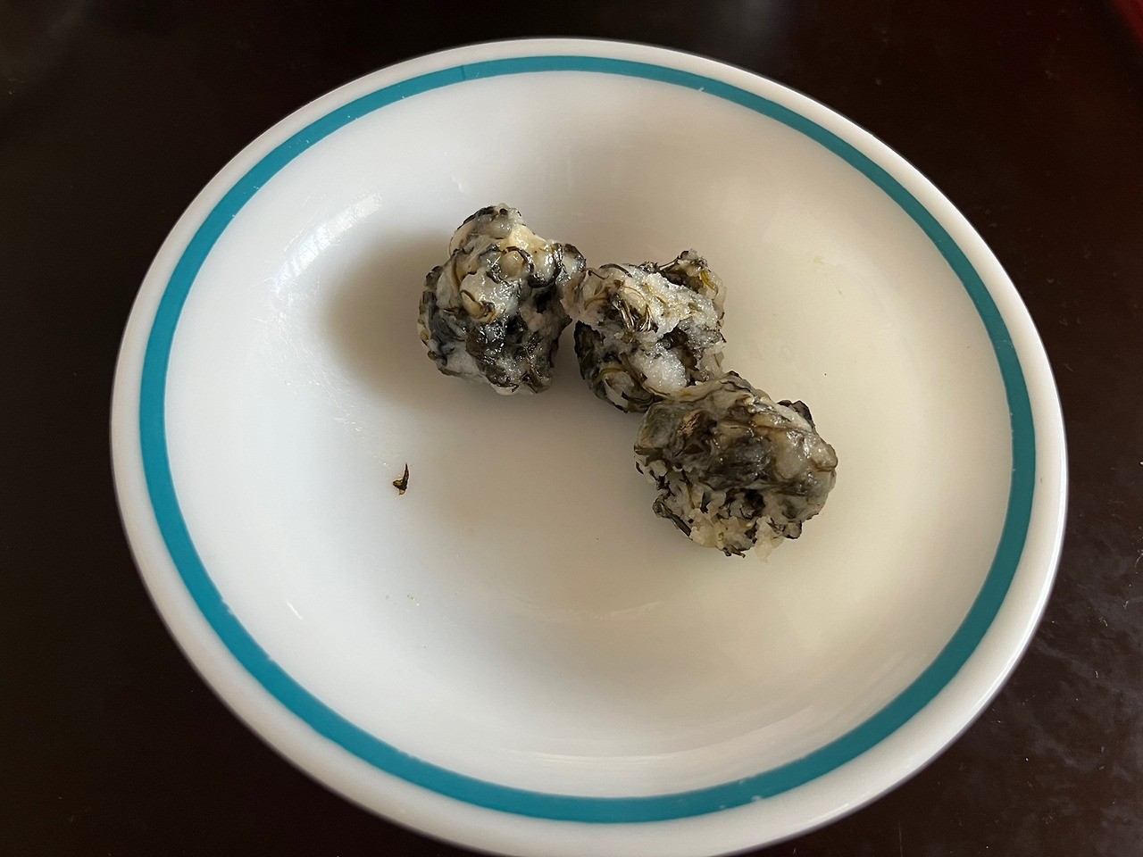 돌아가신 이모가 참 좋아하던 음식이 쑥떡이어서. 어머니가 손수 쑥과 쌀을 섞어 직접 만든 '쑥버무리'여서. 먹어봤다. 입에 착 감기는 맛은 아니지만 심심하니 괜찮다. 자극적이지 않은 음식은 입에 달지 않아도, 먹고 나면 속이 편안하다. 몇 개를 먹고 나서 세 개가 형제처럼 모여있고 왼쪽 여백에 아주 작은 하트처럼 쑥 흔적이 남아있길래 찍었다. 요즘은 안 예뻐도 그냥 찍고 본다. 스스로 의미를 부여하고, 의미가 떠오르면 그 순간이 기억나지 않을까 봐.